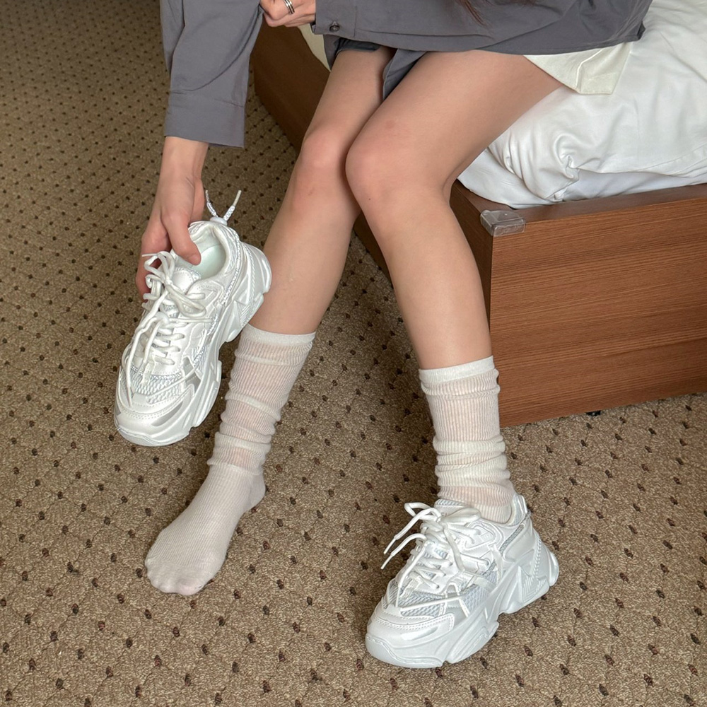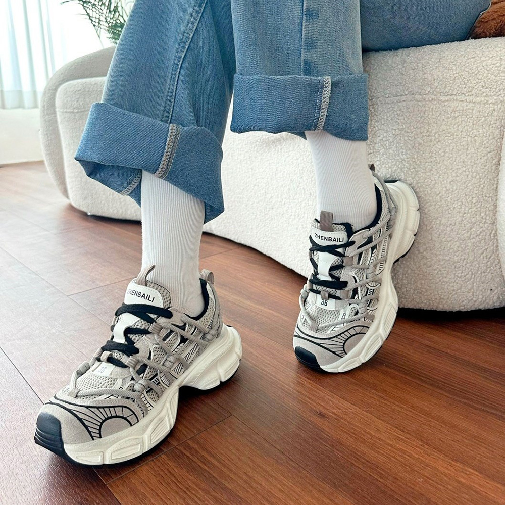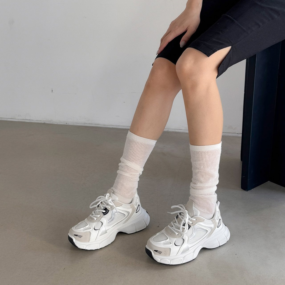 - 키높이운동화 여성운동화 메쉬 어글리슈즈 레더스니커즈 6cm