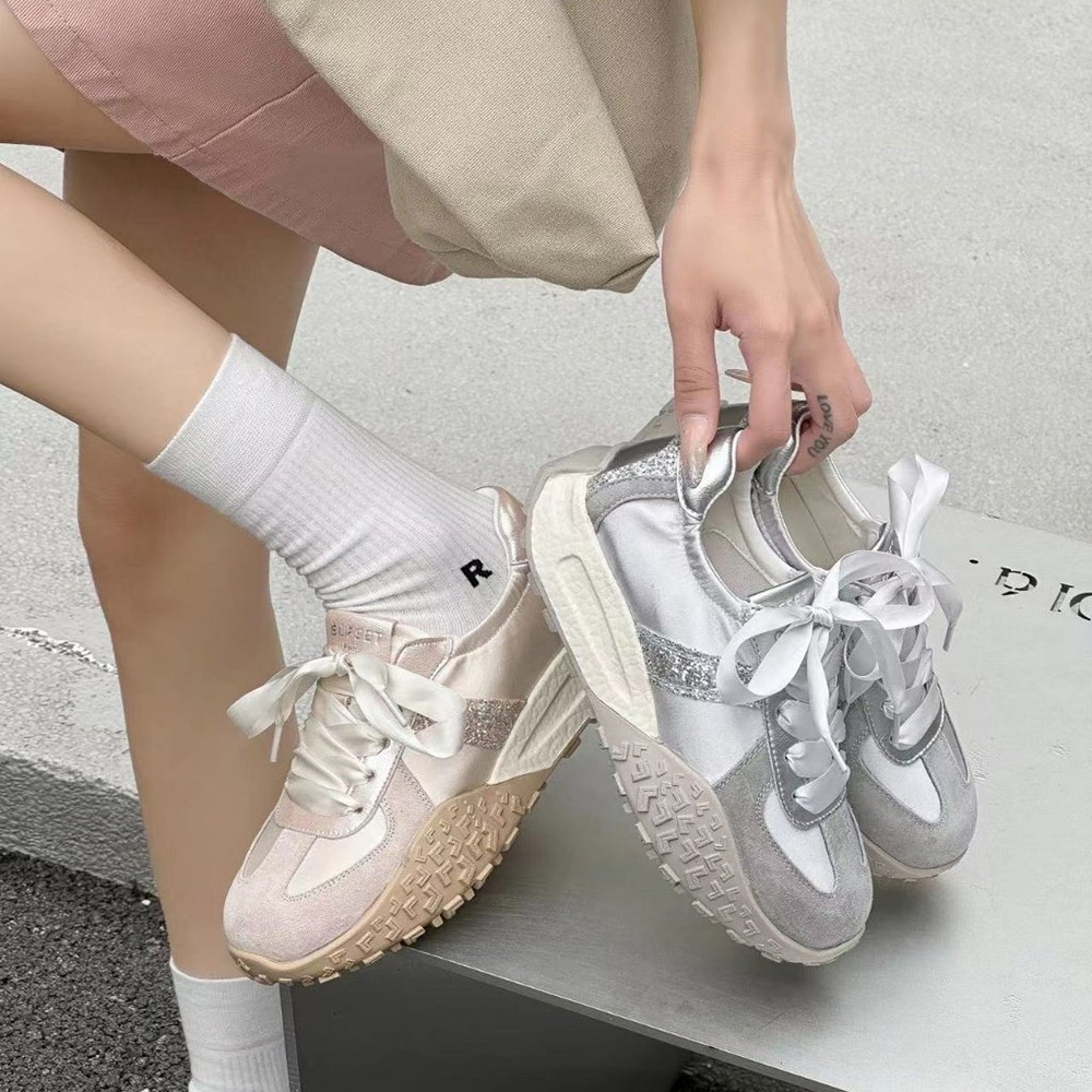 - 리본 새틴 키높이 경량 쿠션 여자 스니커즈