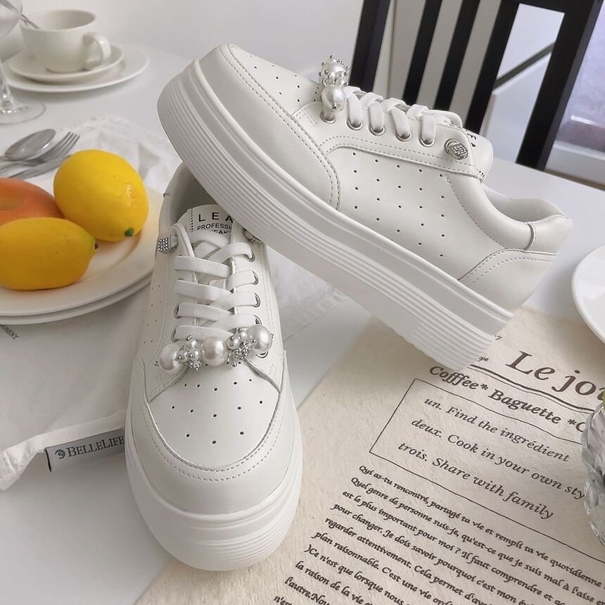 - 진주장식 가죽스니커즈 여성운동화 키높이 통굽 스니커즈