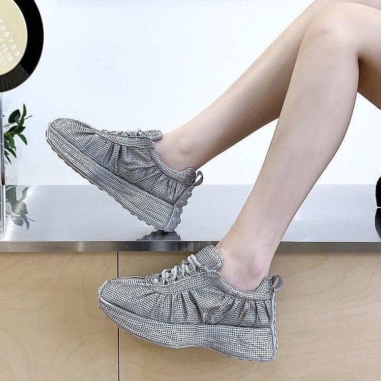 - 사각 큐빅 보석 장식 어글리슈즈 키높이 스니커즈