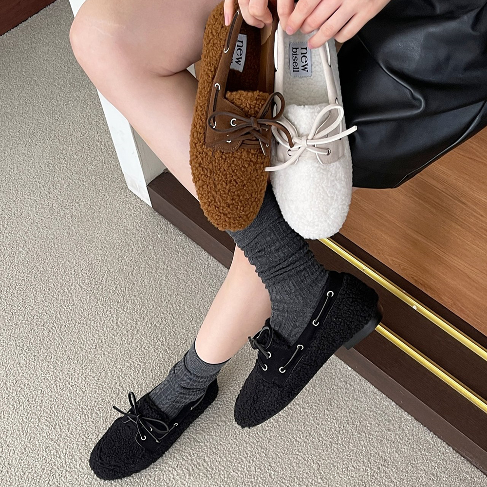 밴딩 리본 발편한 라운드토 여자 플랫슈즈