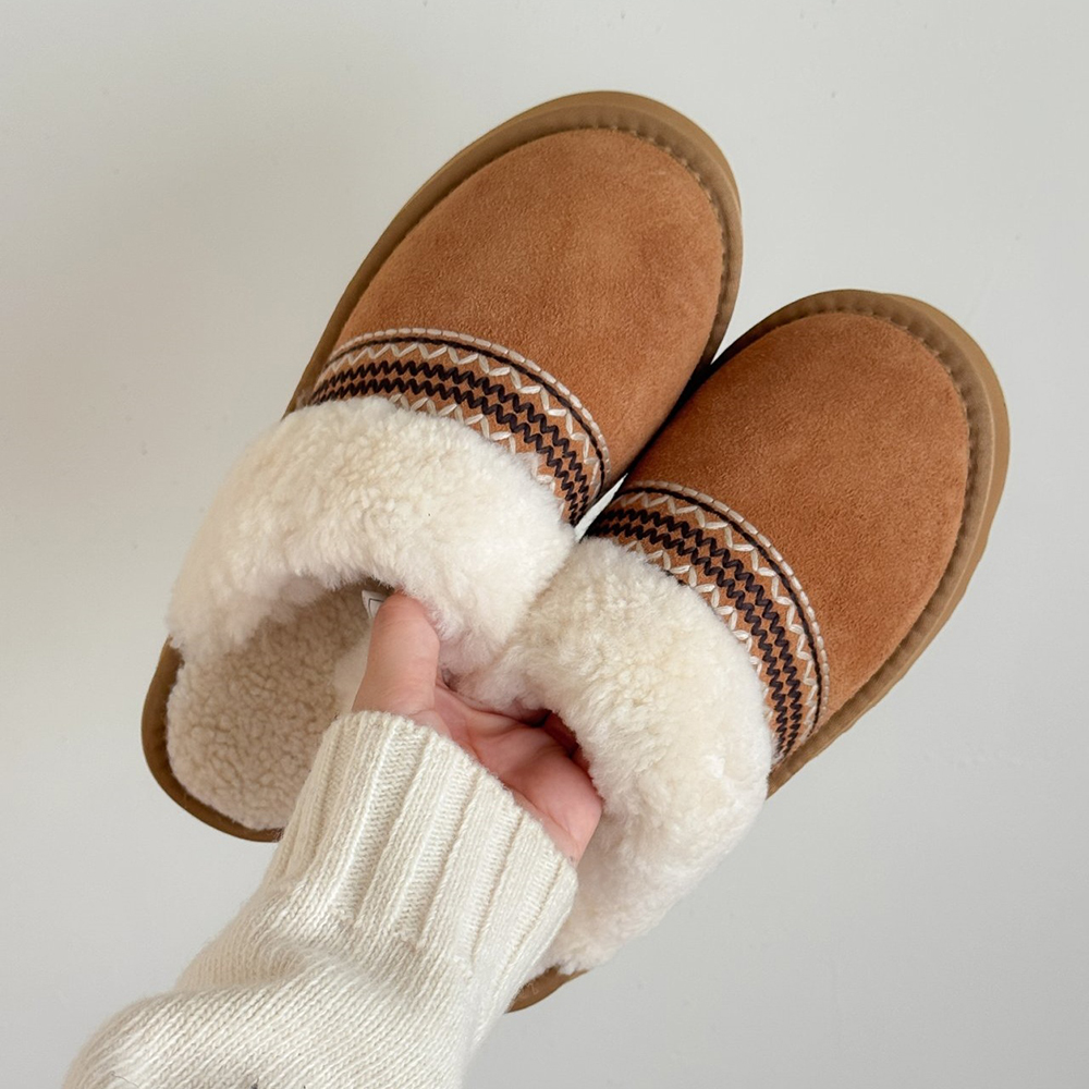 코지 천연 소가죽 스웨이드 여성 블로퍼 슬리퍼