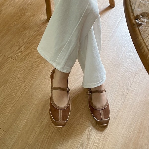 • 스웨이드 천연소가죽 여자 발편한 메리제인 플랫슈즈