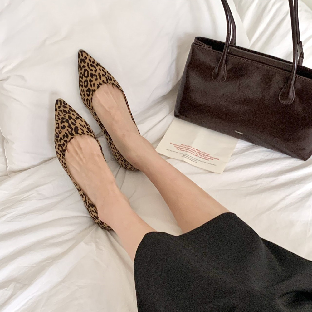 • 여성 발편한 플랫슈즈 스웨이드 호피 베이직 스틸레토