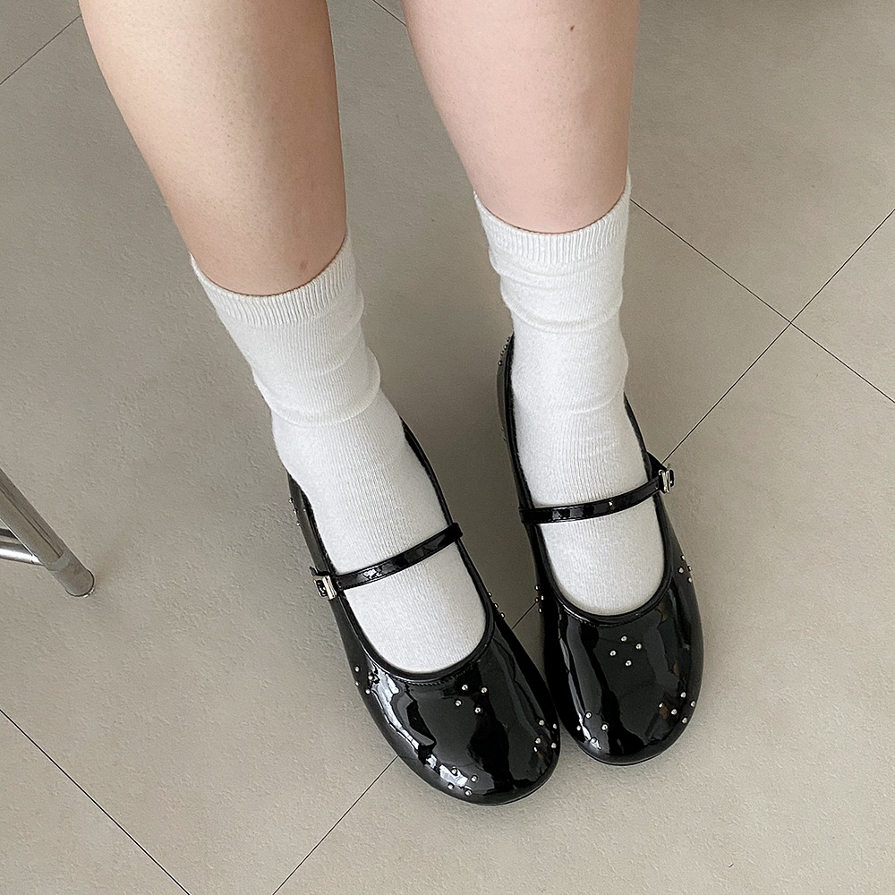 에나멜 스퀘어토 골드버튼 스트랩 메리제인 플랫슈즈