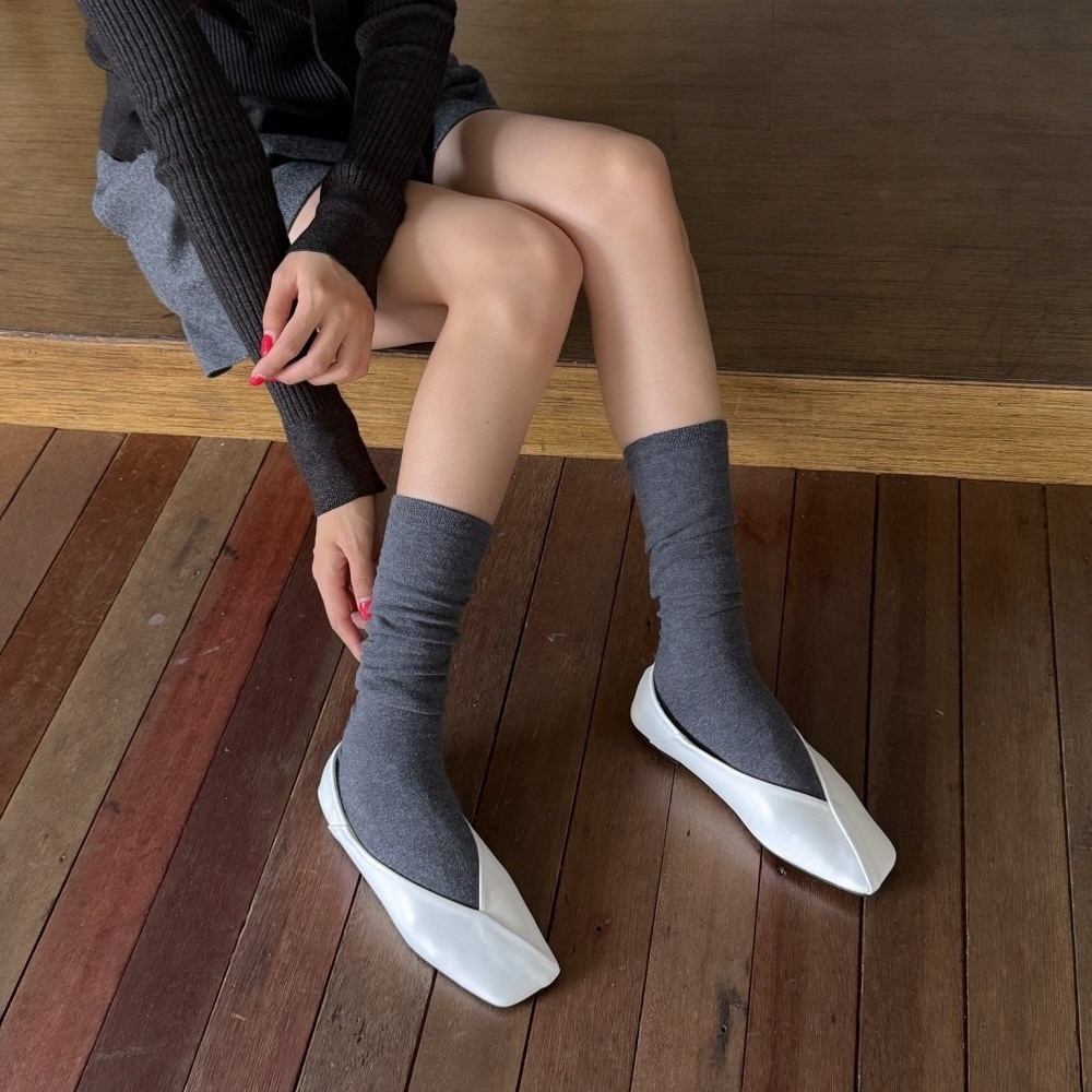 발레리나 리본 투톤 여자 단화 플랫슈즈