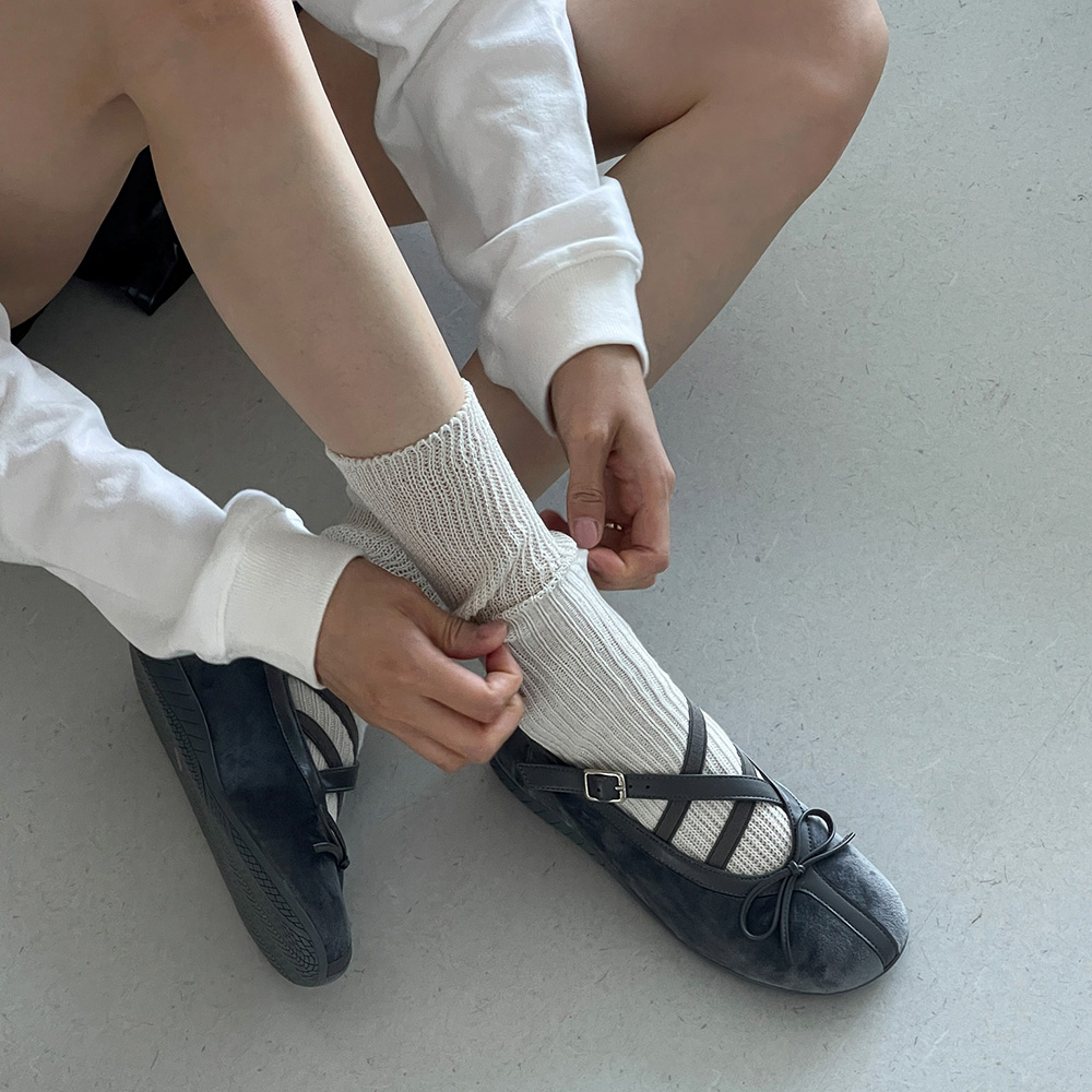 • 니트 리본 라운드토 쿠션 발편한 여자 플랫슈즈