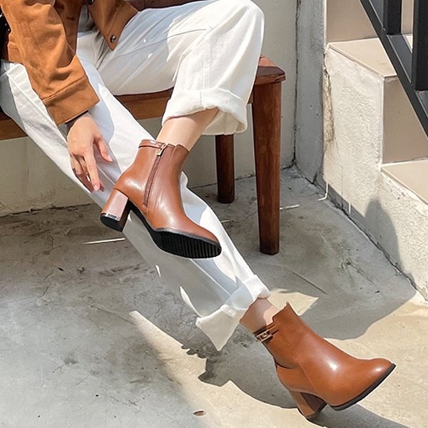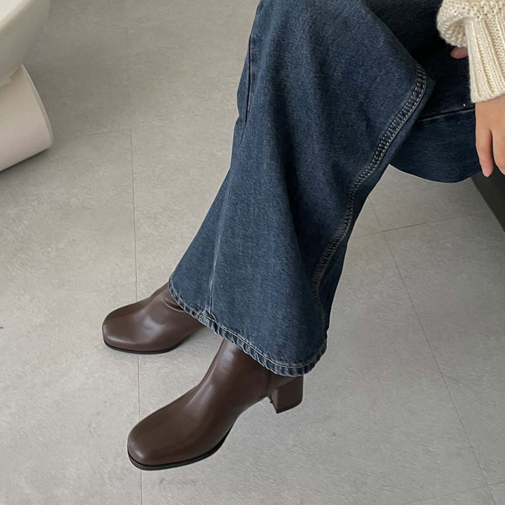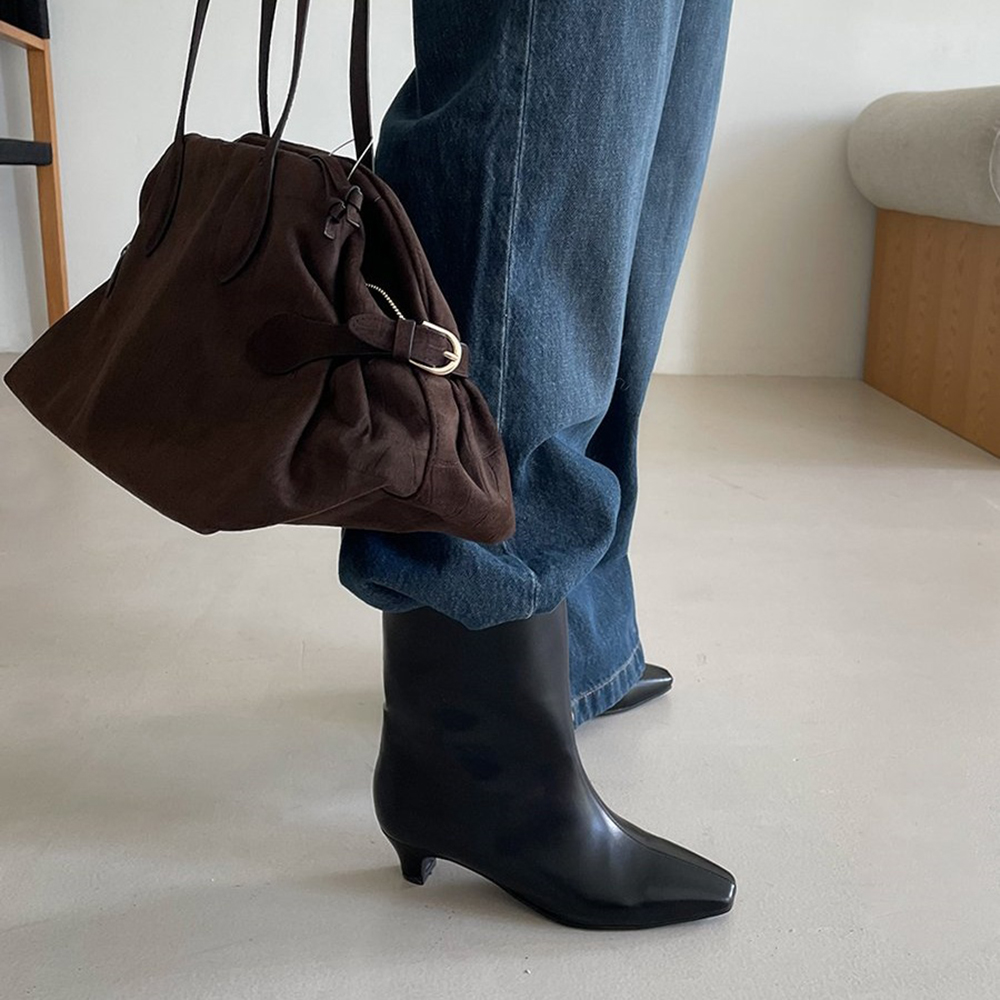 키튼힐 미들굽 스틸레토 심플 하프 여자 미들부츠