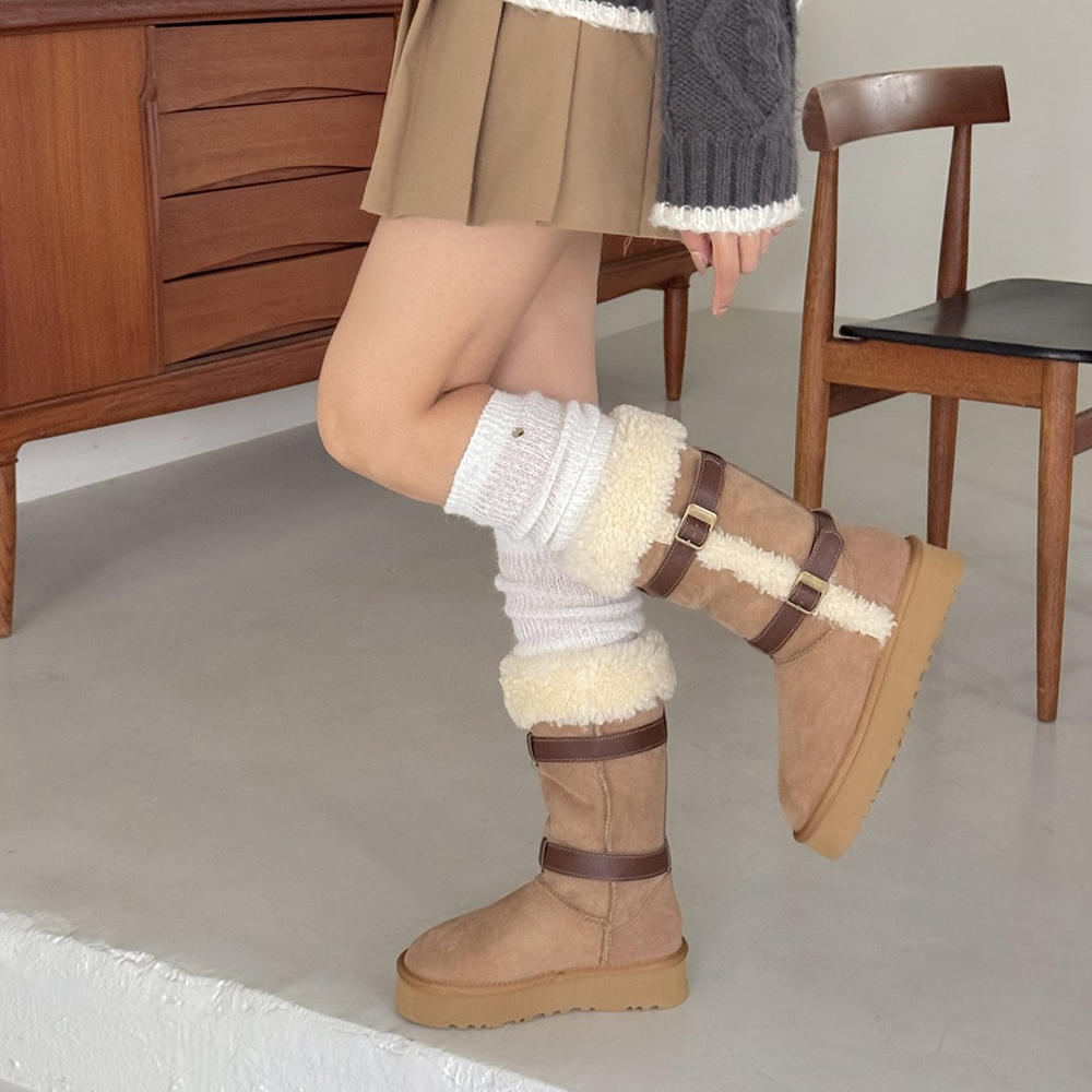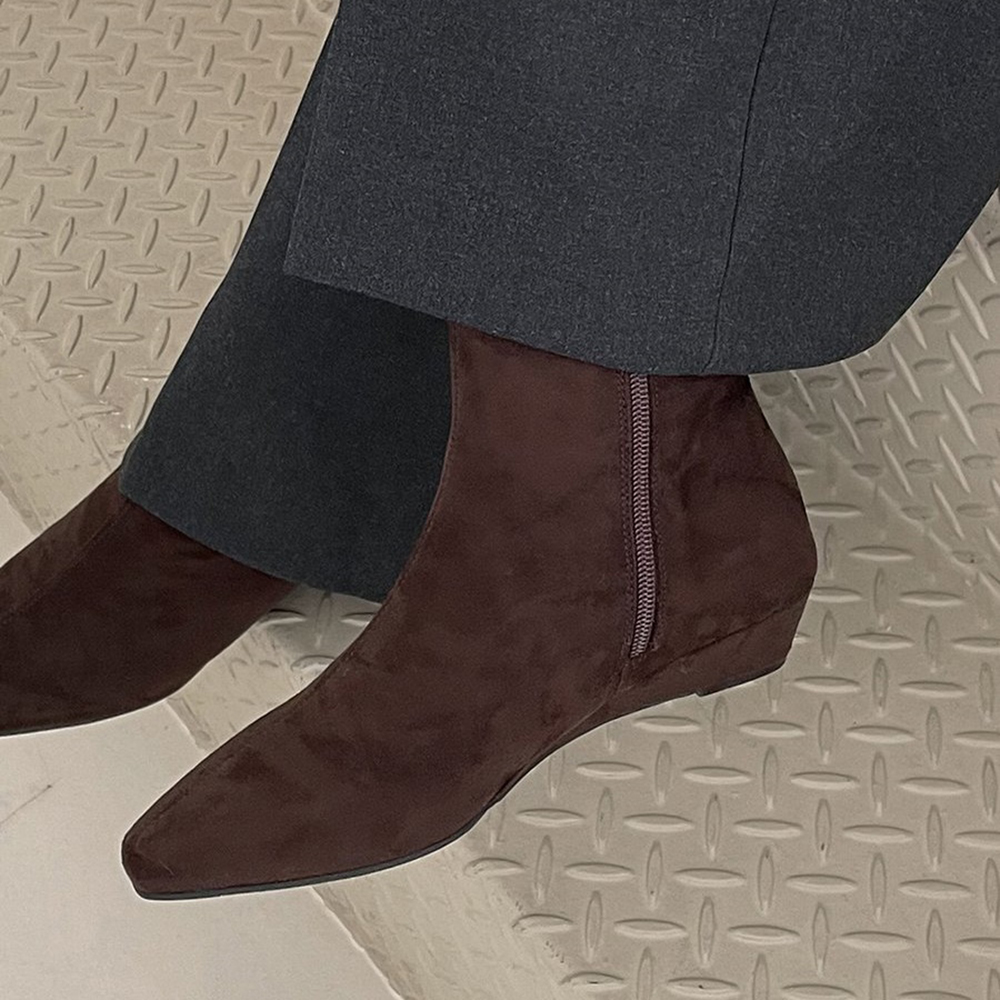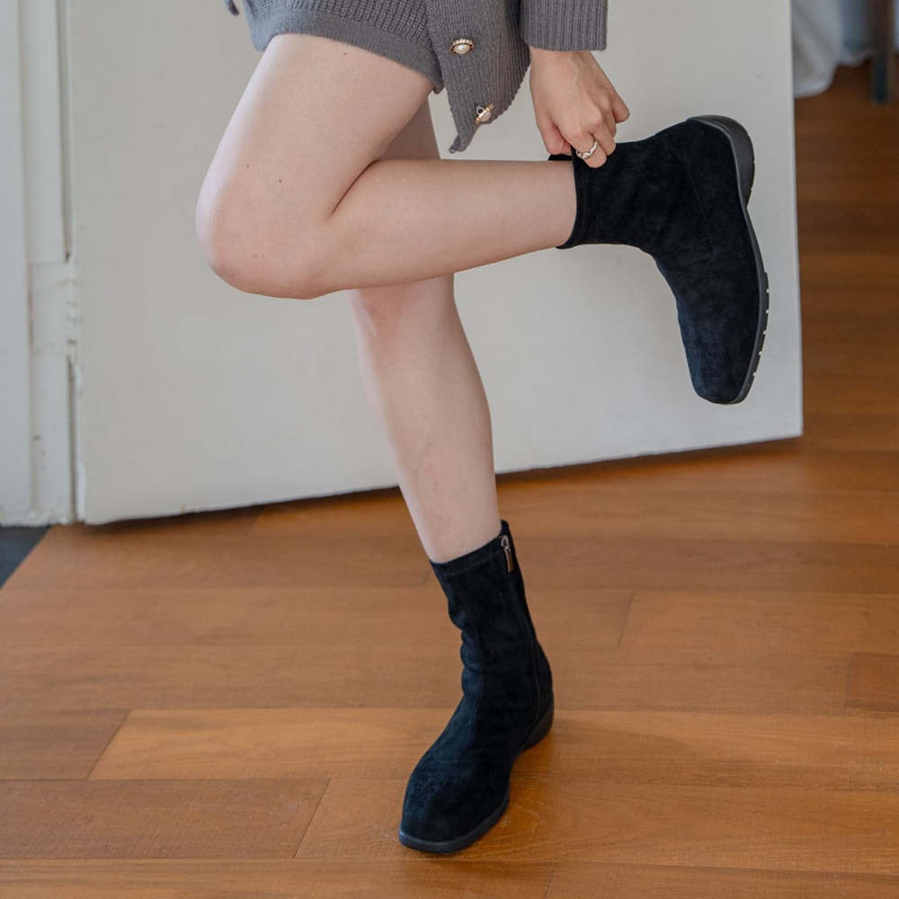 천연 소가죽 스웨이드 내추럴핏 미디 하프 여자 미들부츠