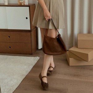 발편한 리본 스퀘어토 스웨이드 폭신 플랫슈즈