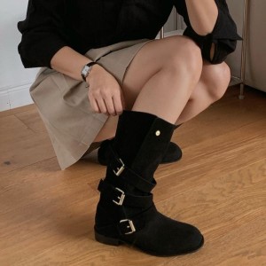 투웨이 벨트 스웨이드 바이커 미디 하프 여자 미들부츠