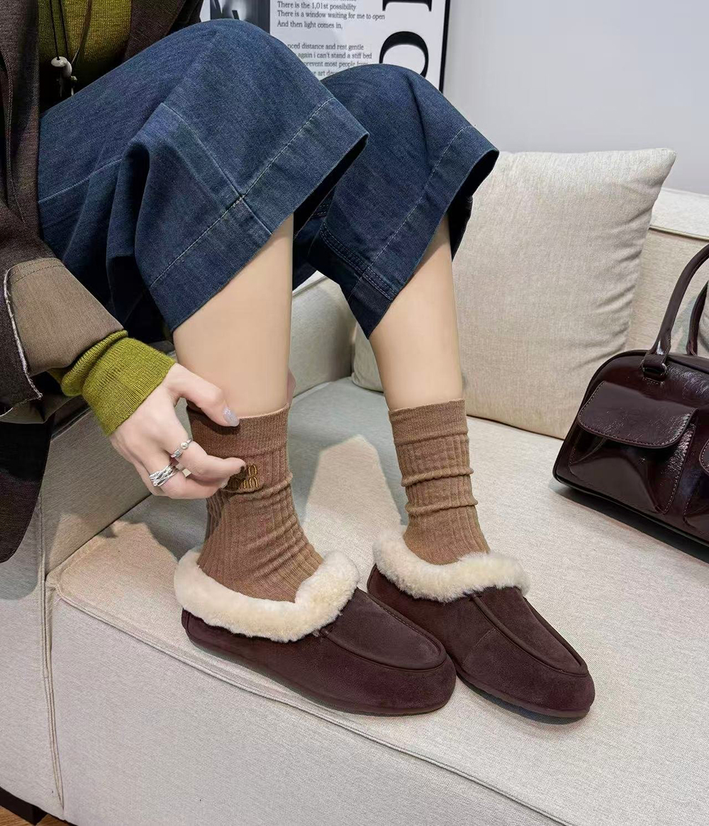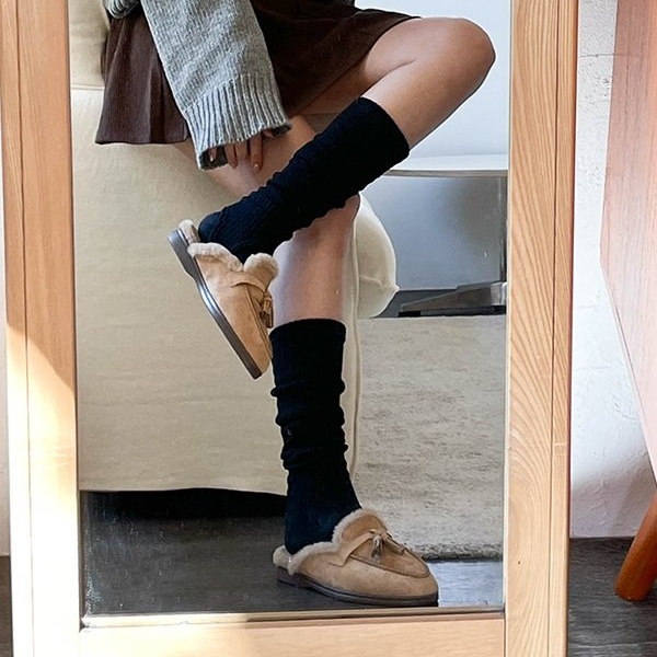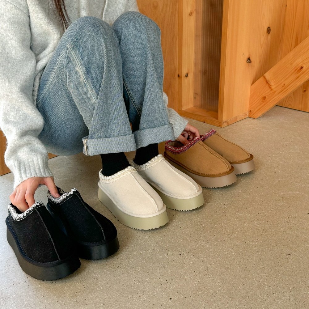 코지 천연 소가죽 스웨이드 여성 블로퍼 슬리퍼