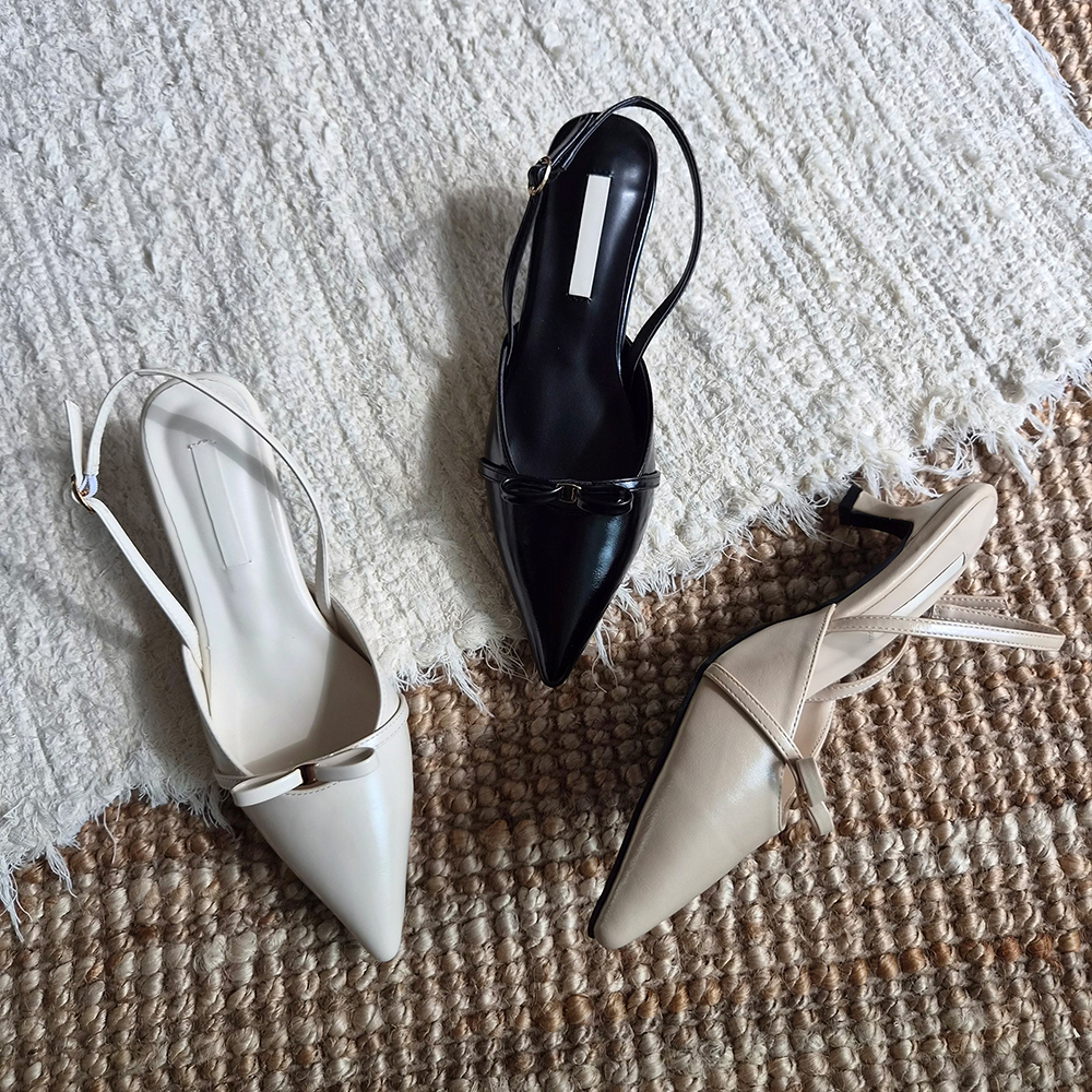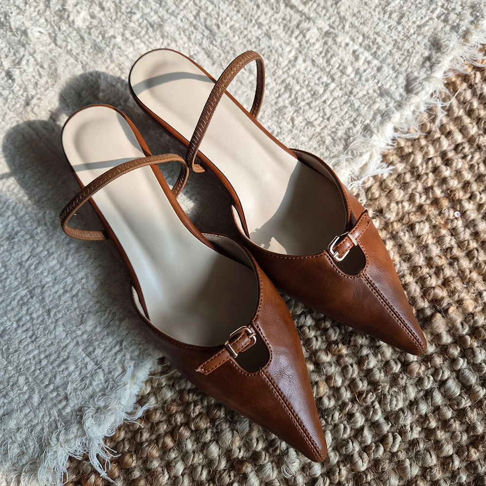 스틸레토 슬링백 플랫 발볼넓은 사람도 편한 1cm 낮은굽 스트랩