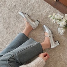 스퀘어토 버클 스트랩 통굽 메리제인 미들힐 펌프스