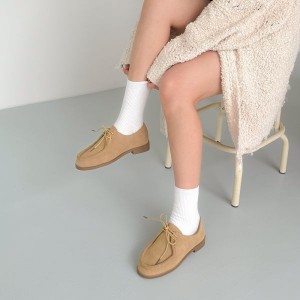 천연 소가죽 스웨이드 레이스업 데저트 여자 로퍼