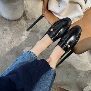 골드 버튼 장식 셔링 라인 여자 로퍼