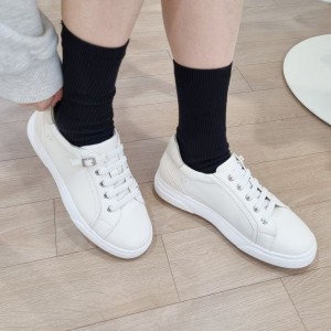 여자 운동화 밴딩 스트랩 버클 키높이 천연소가죽 스니커즈