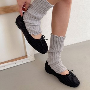 스퀘어 코듀로이 골덴 안감기모 리본 플랫슈즈