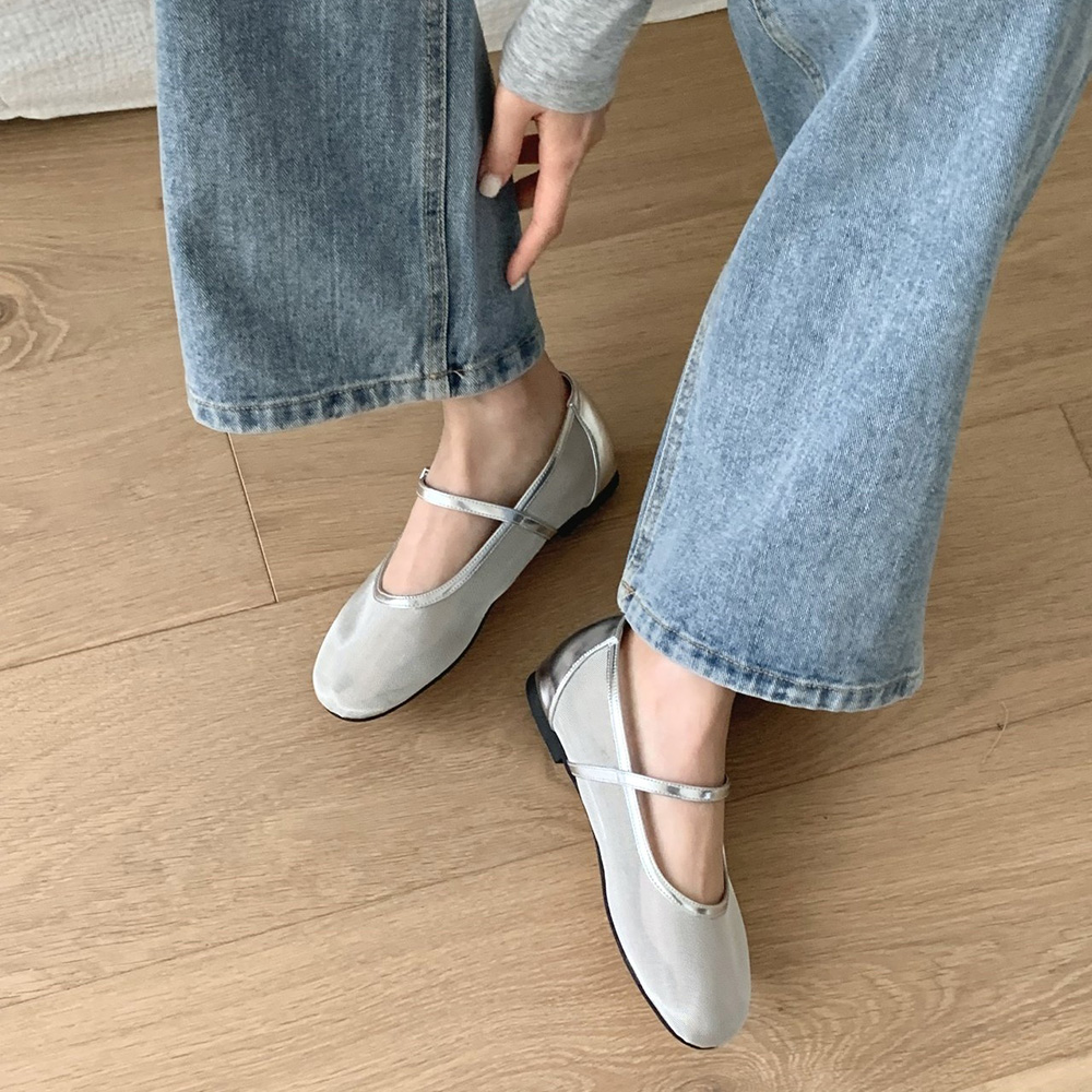 - 시스루 메쉬 발레리나 망사 여성 메리제인단화 플랫슈즈