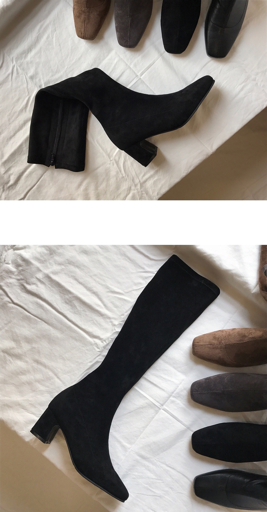 스판 삭스부츠 미들힐 스웨이드 롱부츠