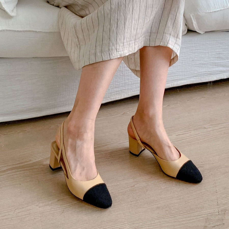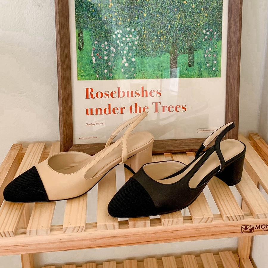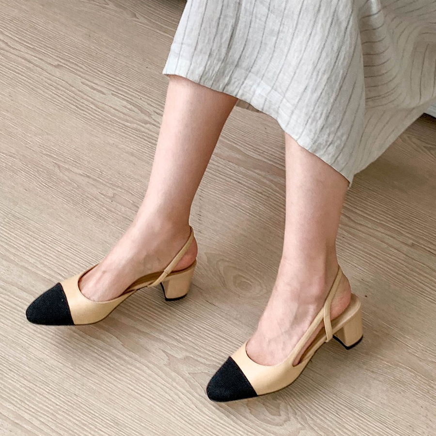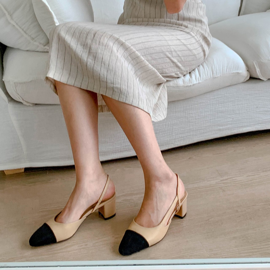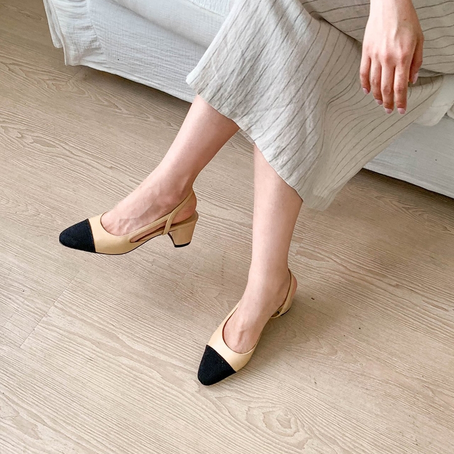 클래식한 디자인의 투톤 콤비 슬링백구두에요
