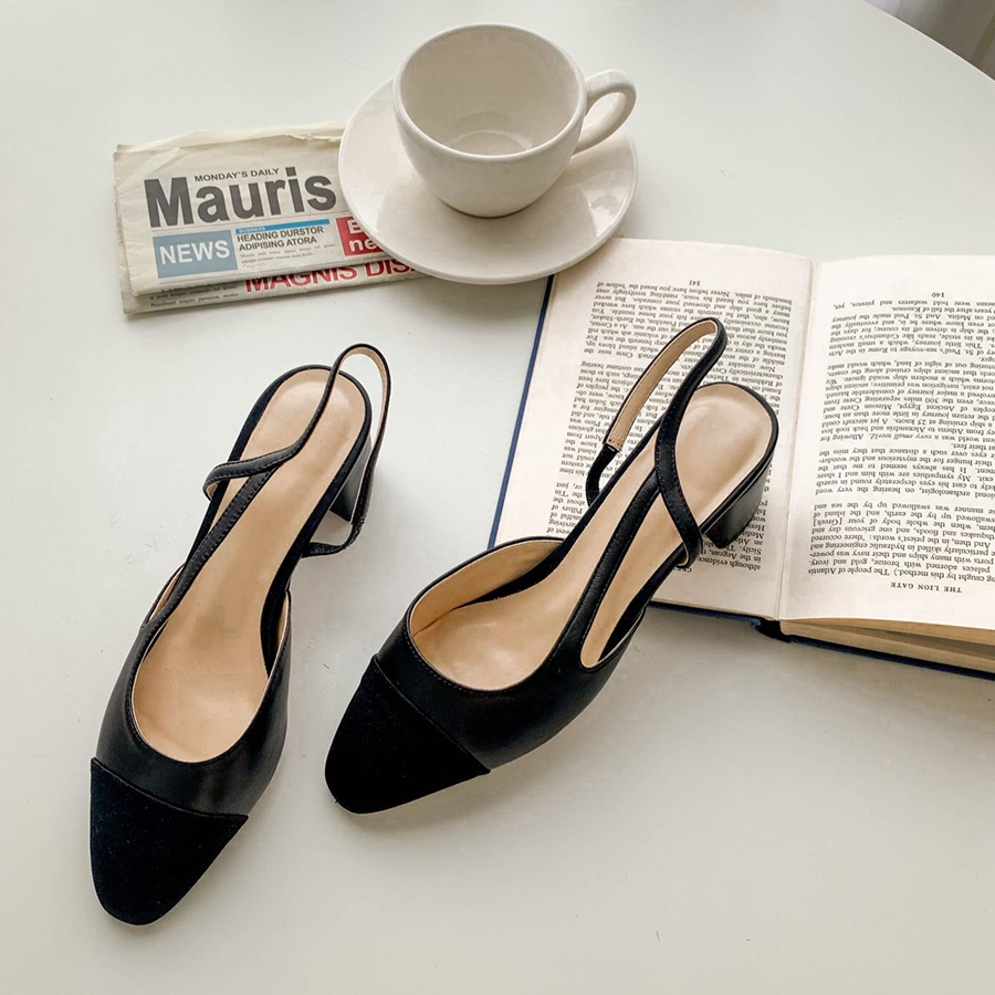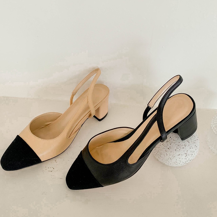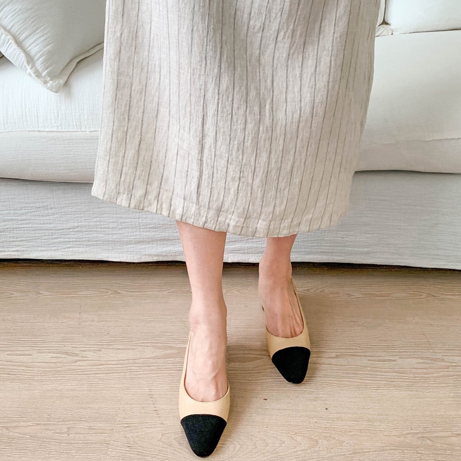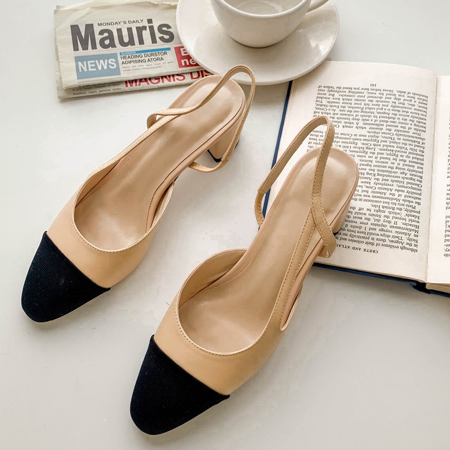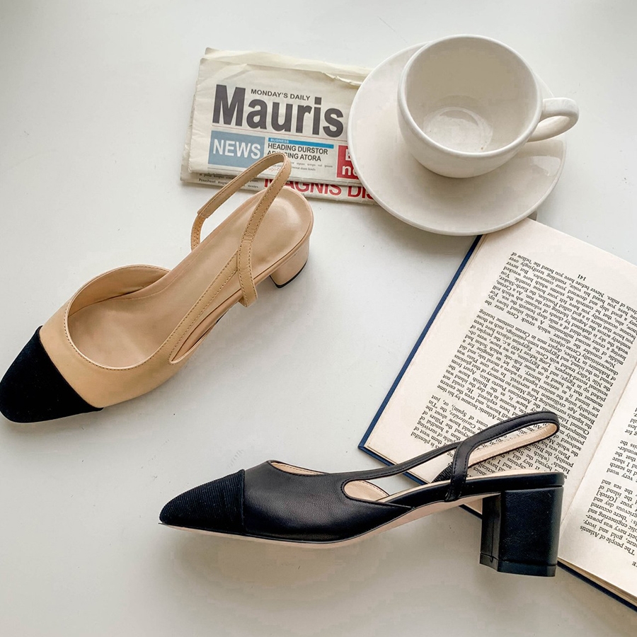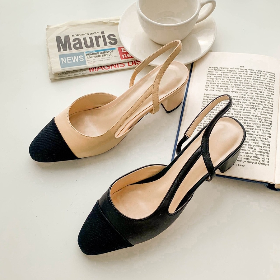 클래식한 디자인의 투톤 콤비 슬링백구두에요