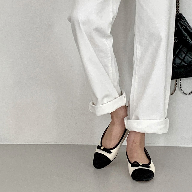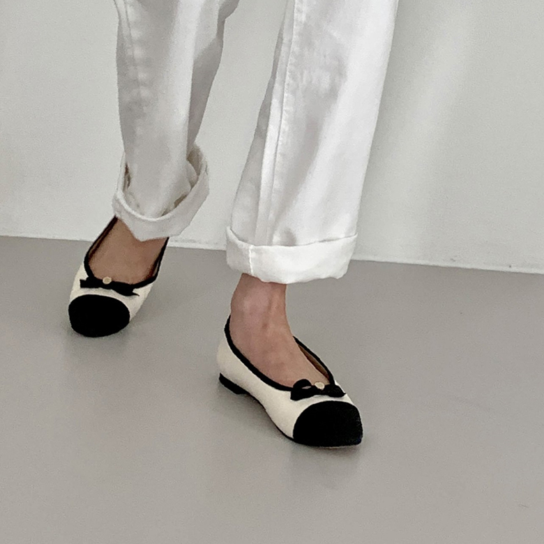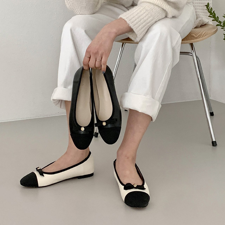 투톤으로 제작된 분위기 있는 플랫슈즈입니다