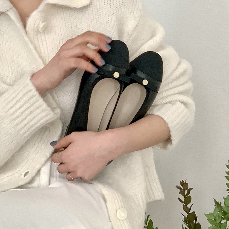 앞코와 리본은 새틴 소재이며 코인 장식으로