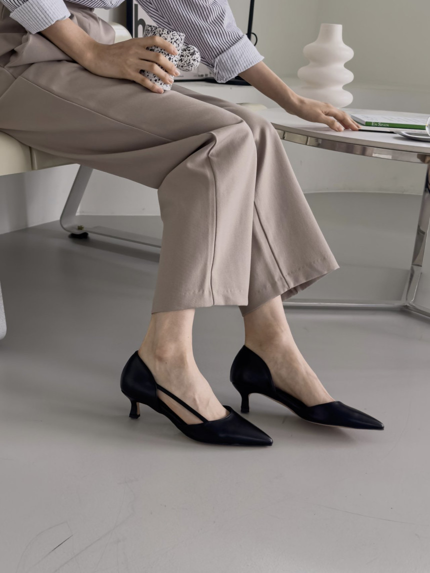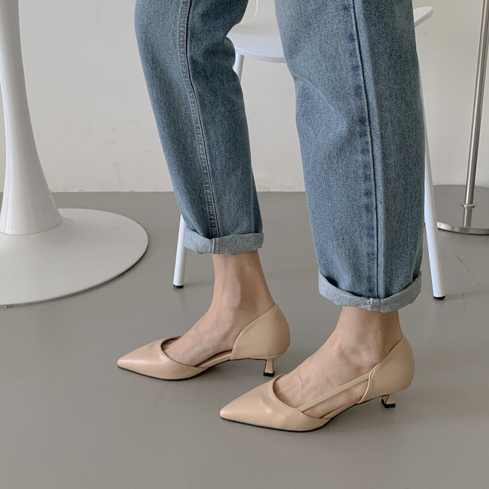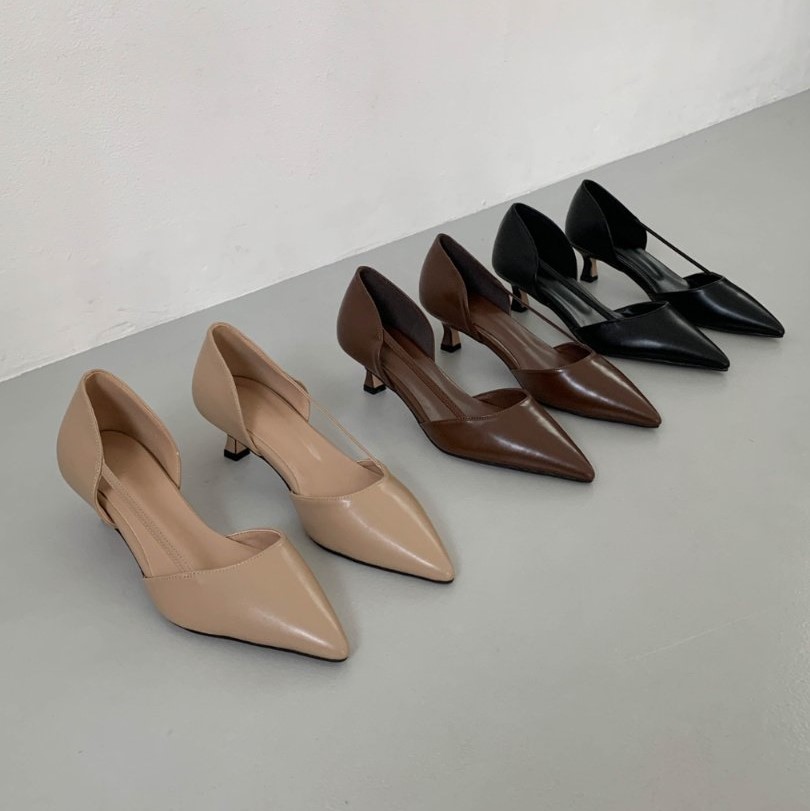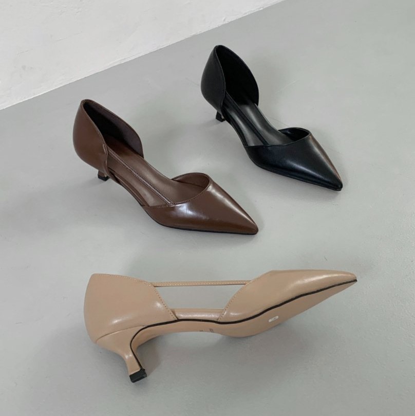 스틸레토 사이드 오픈 키튼힐 여자 구두 펌프스 미들힐