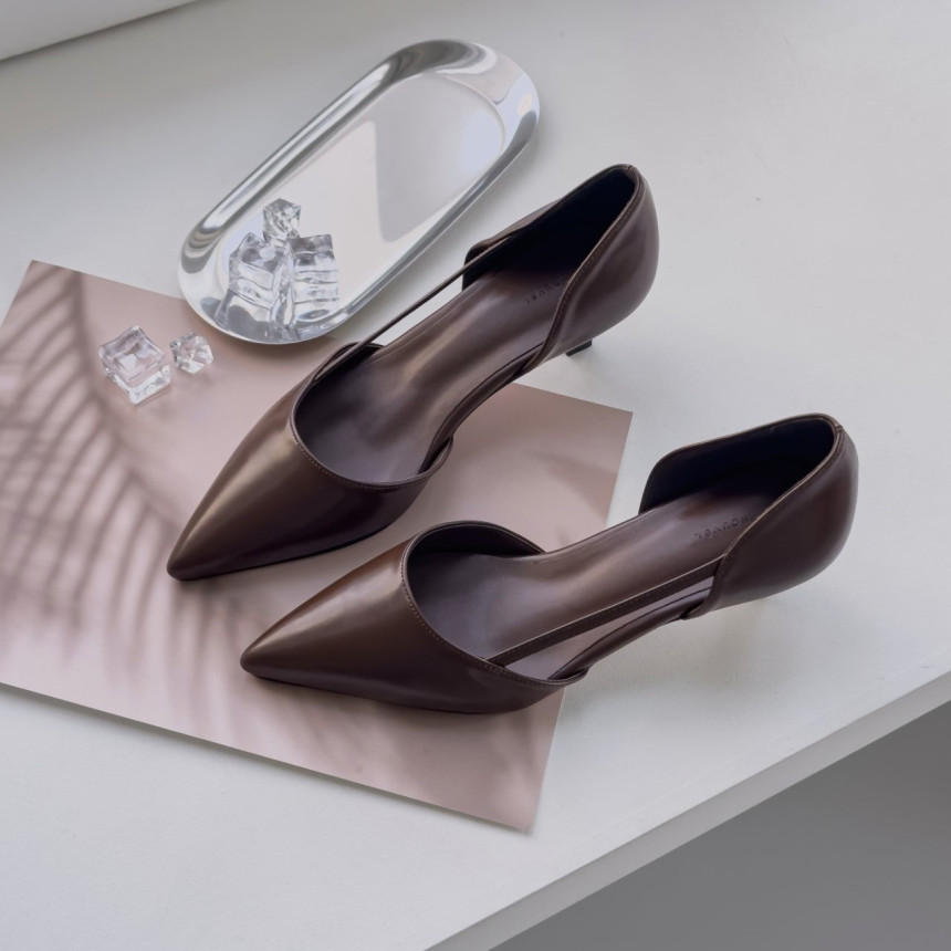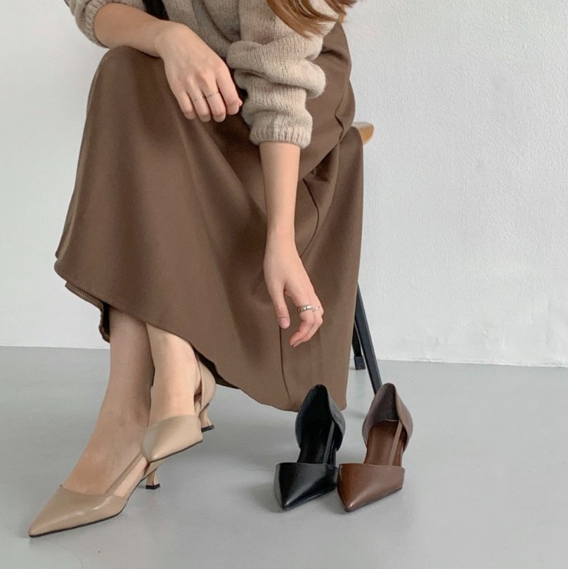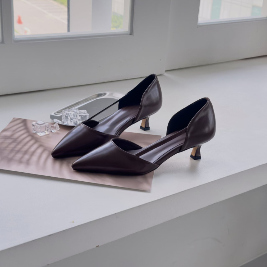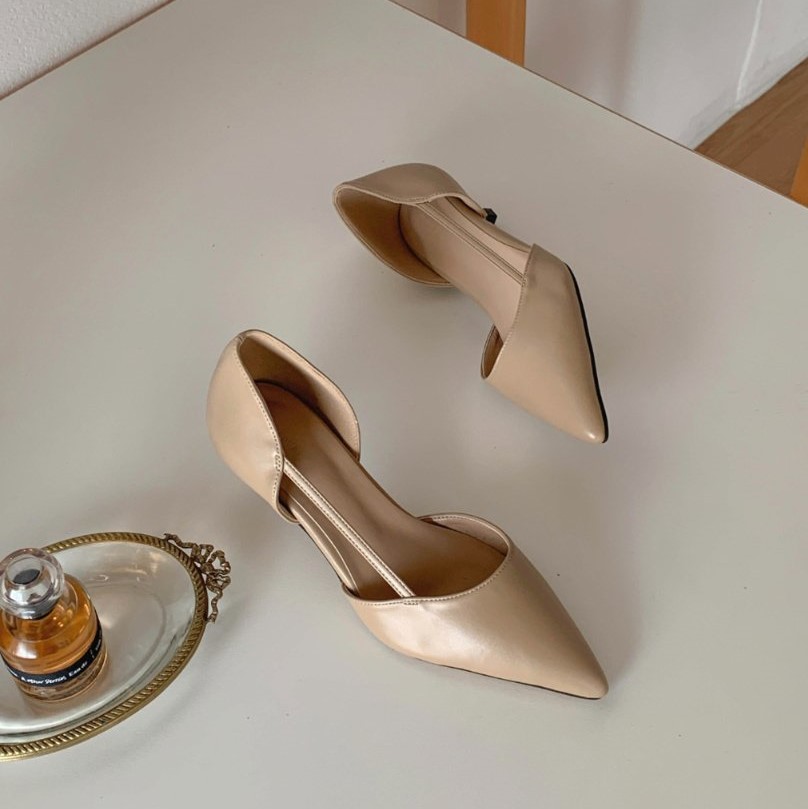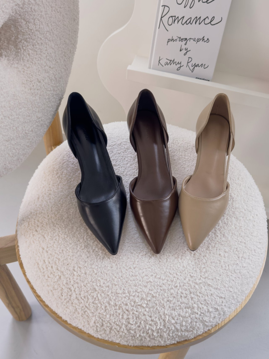스틸레토 사이드 오픈 키튼힐 여자 구두 펌프스 미들힐