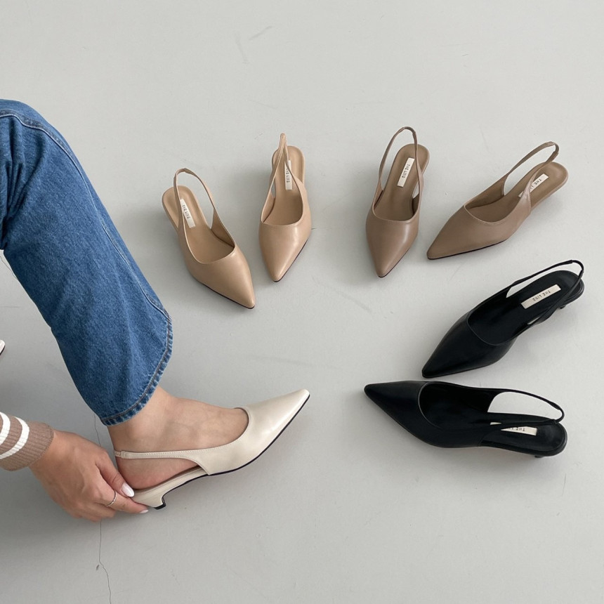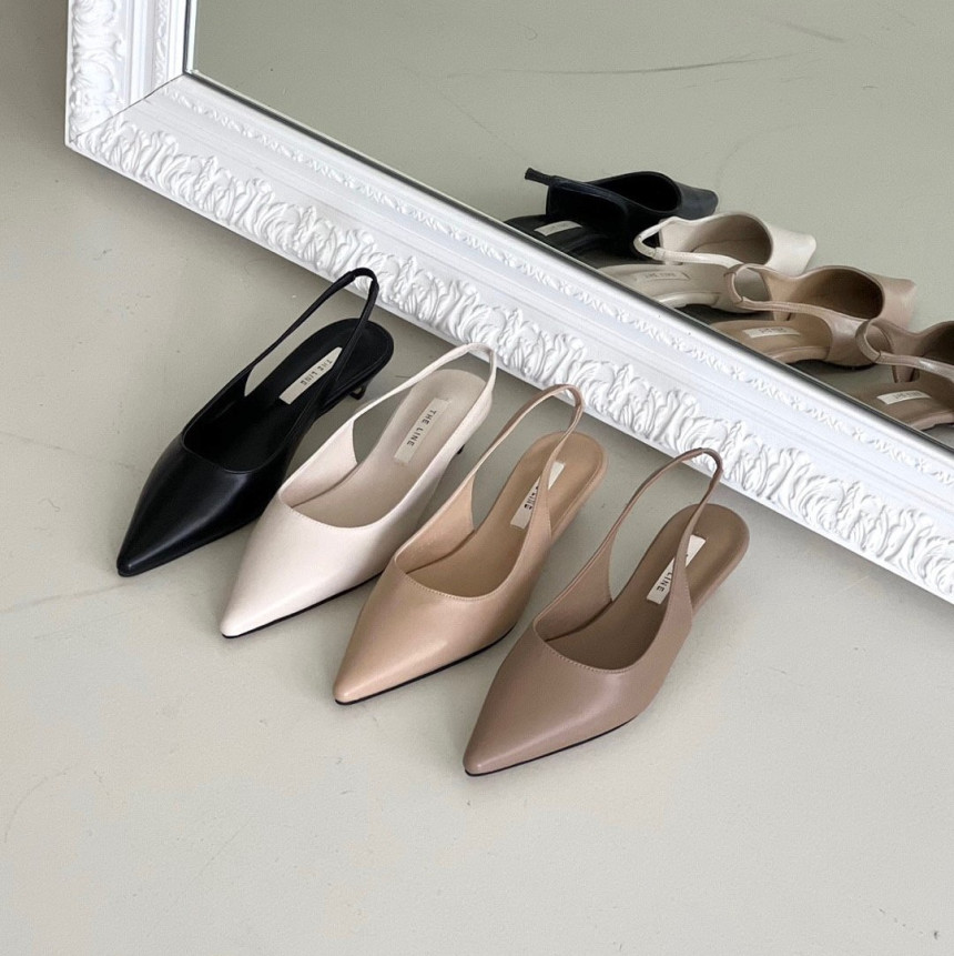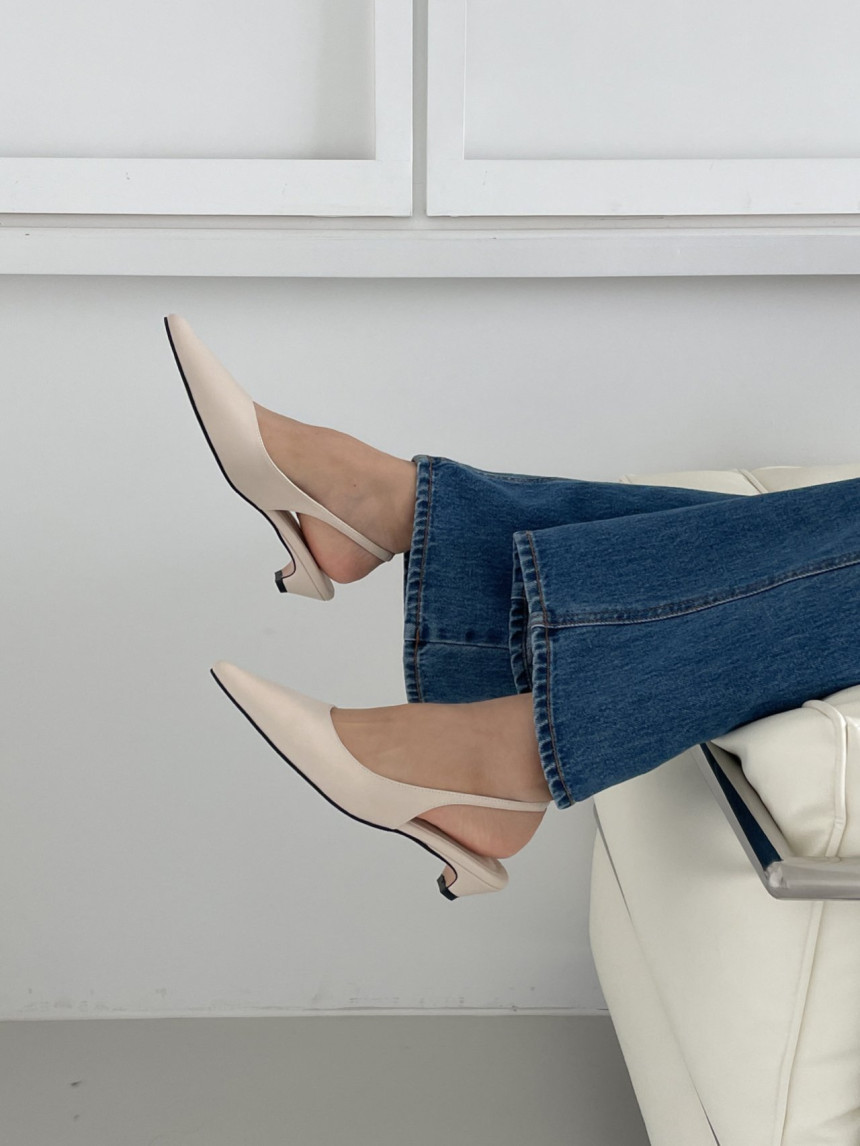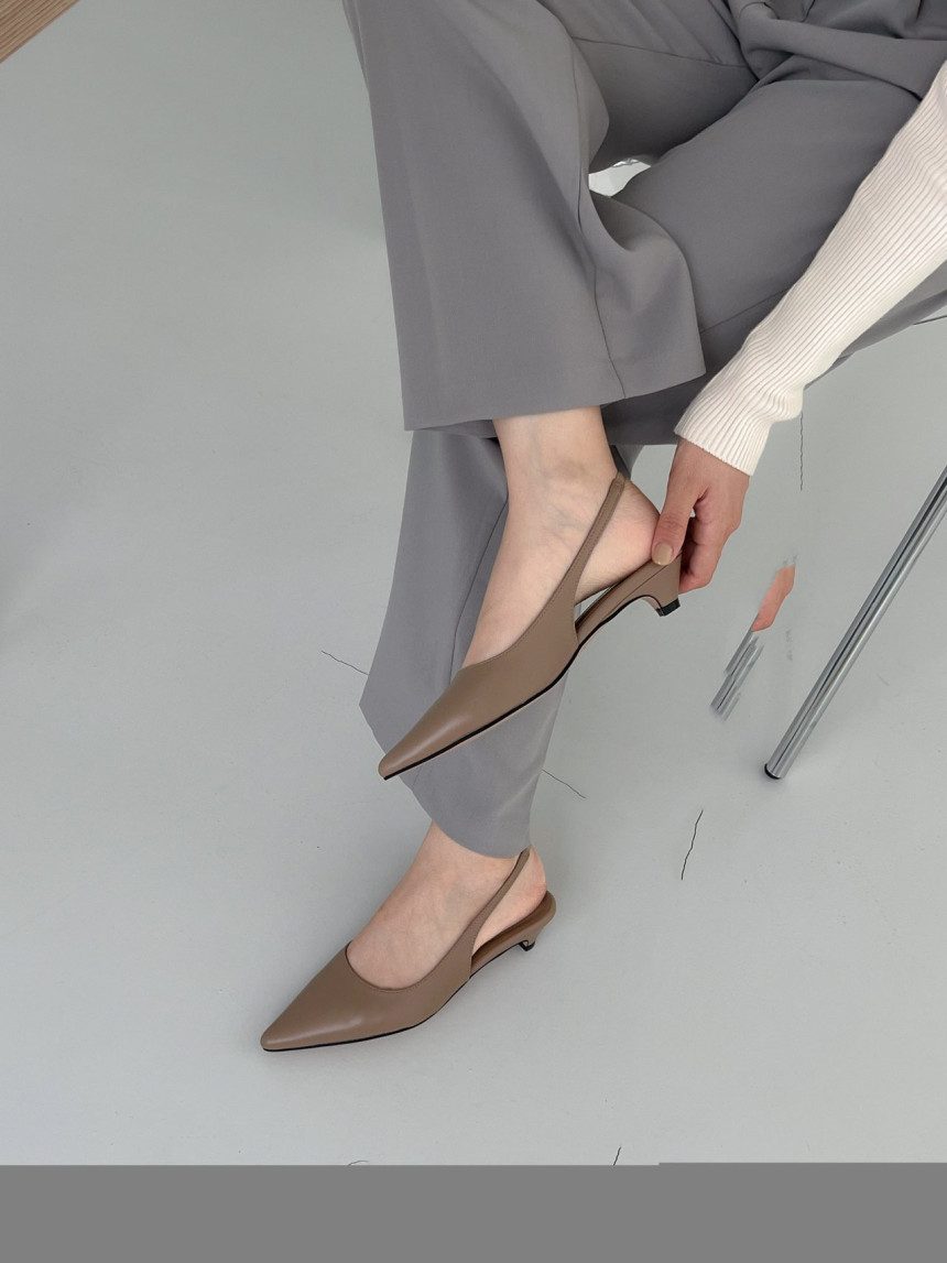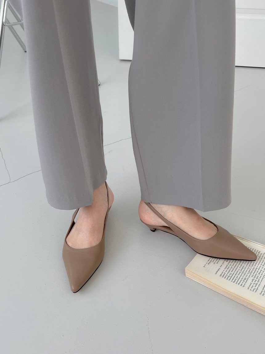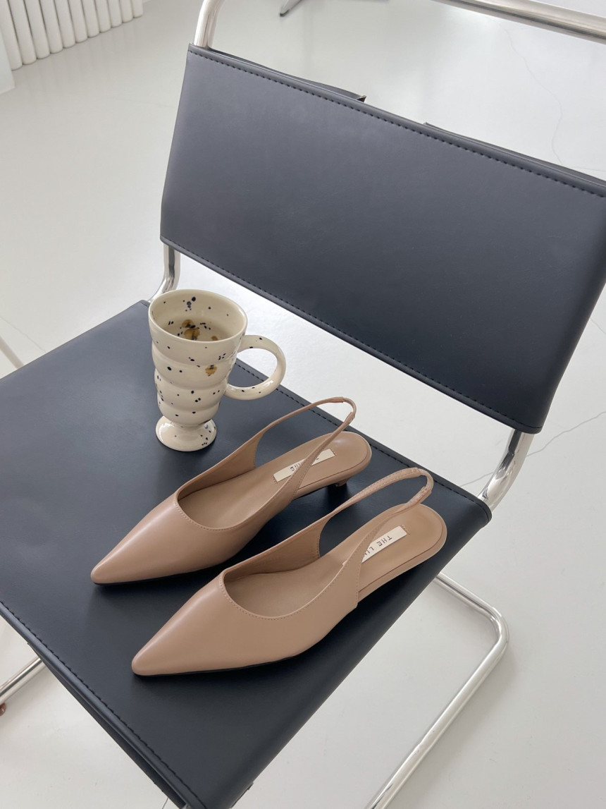 높지 않고 세련된 키튼굽의 슬링백힐입니다