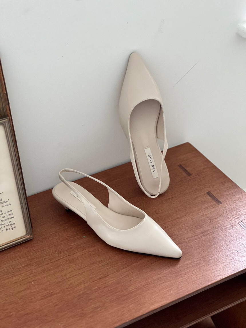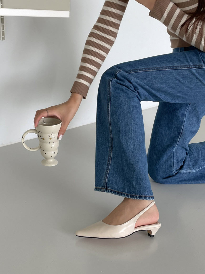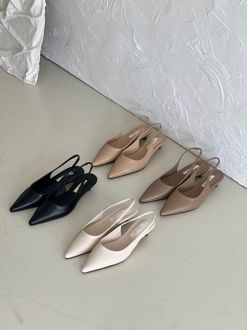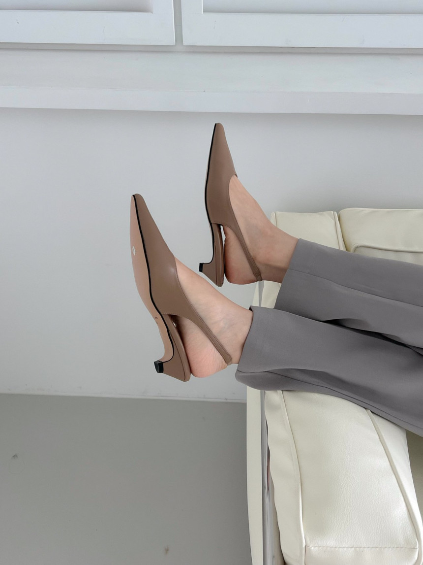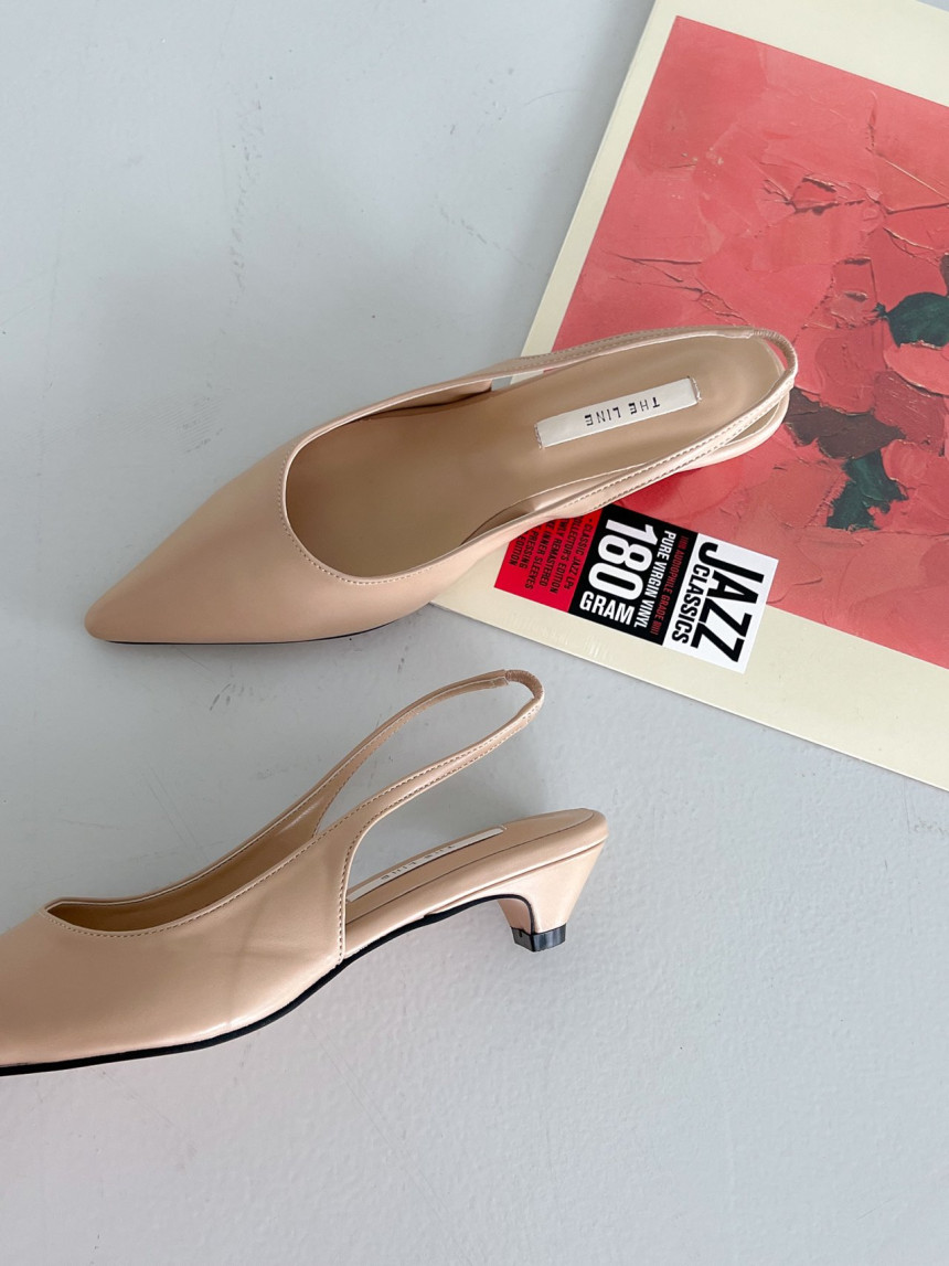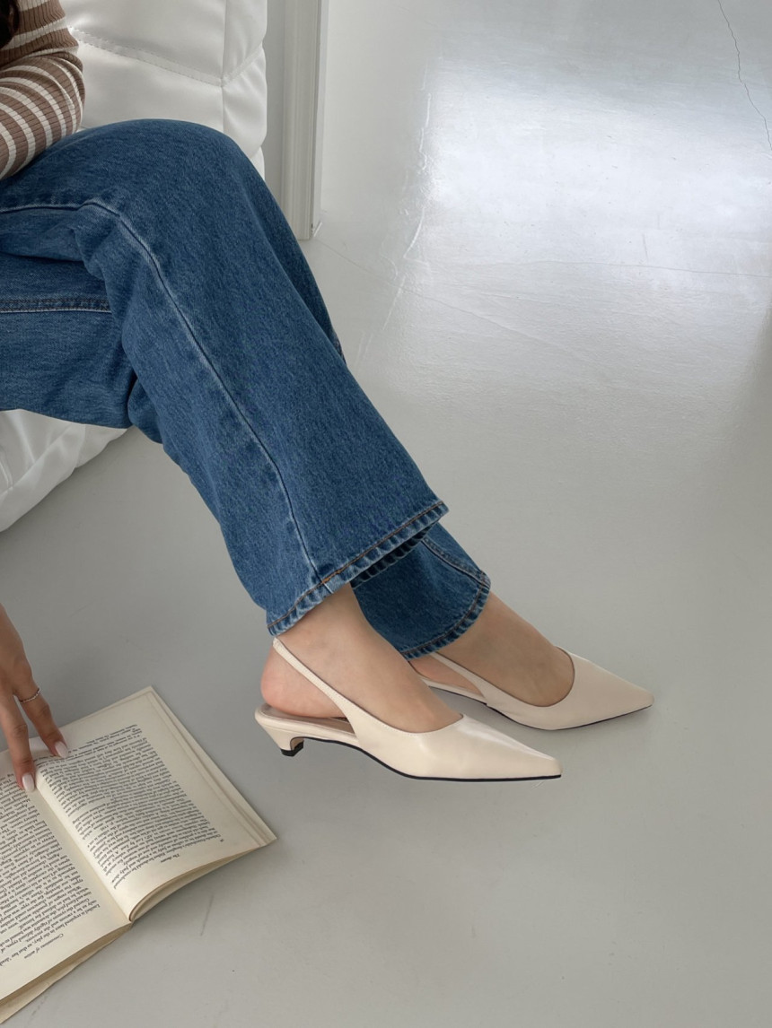 높지 않고 세련된 키튼굽의 슬링백힐입니다