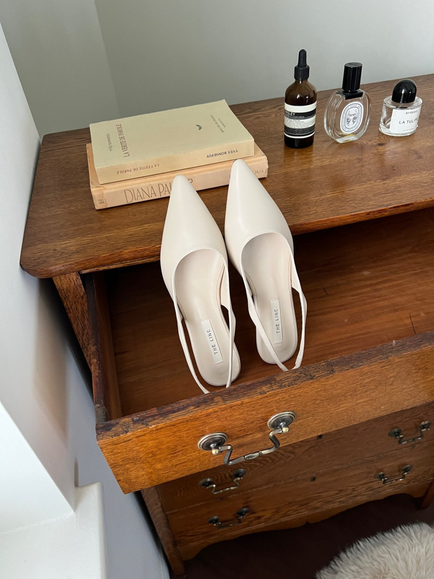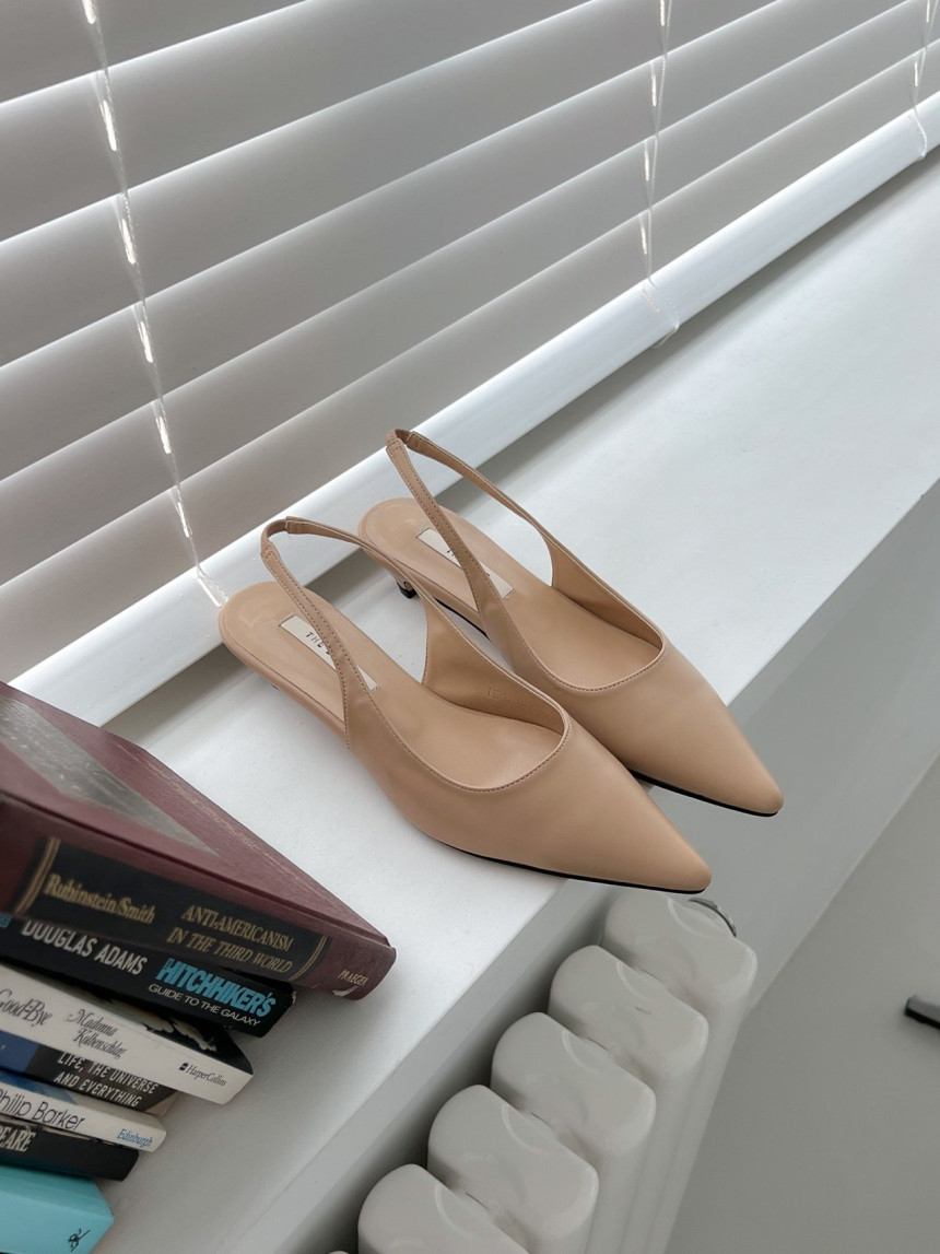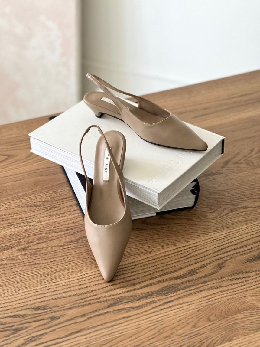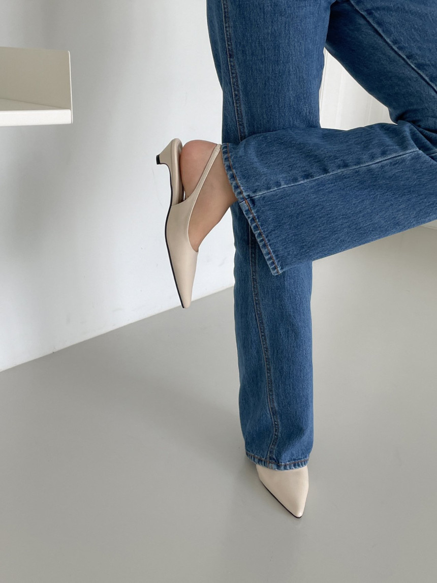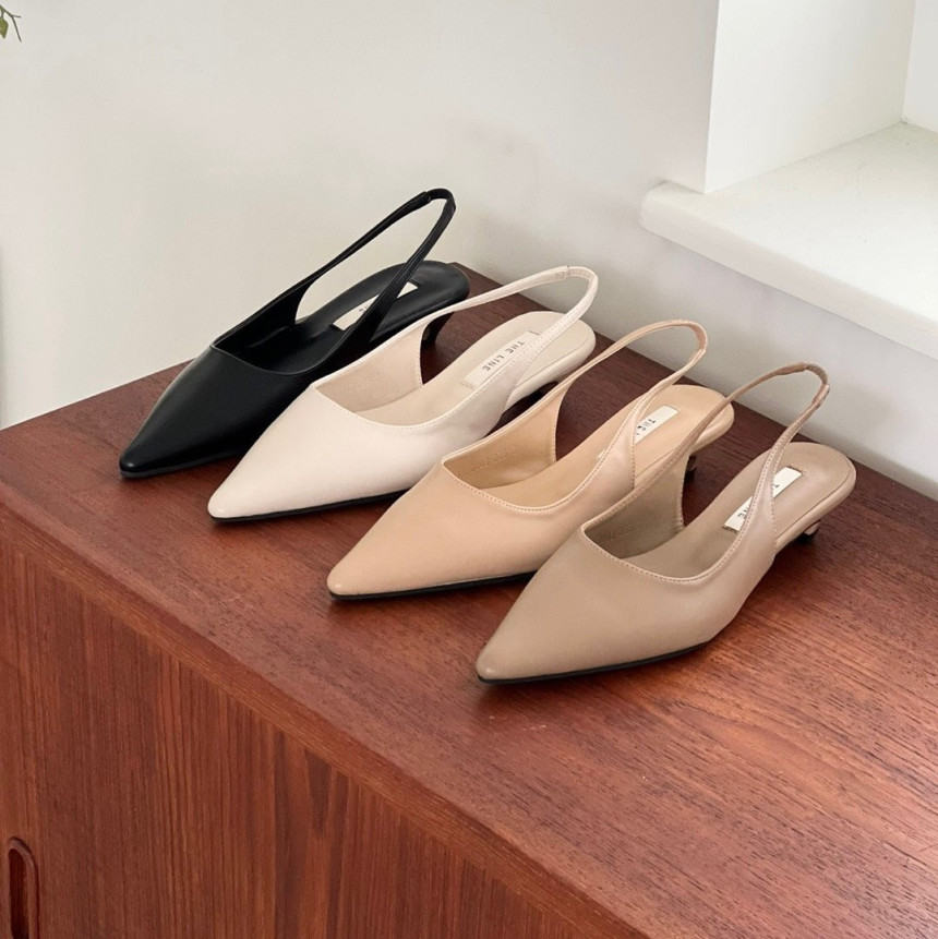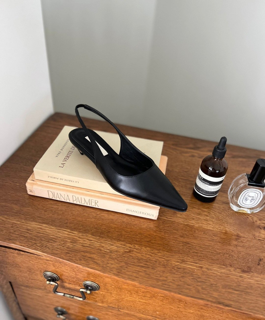 높지 않고 세련된 키튼굽의 슬링백힐입니다