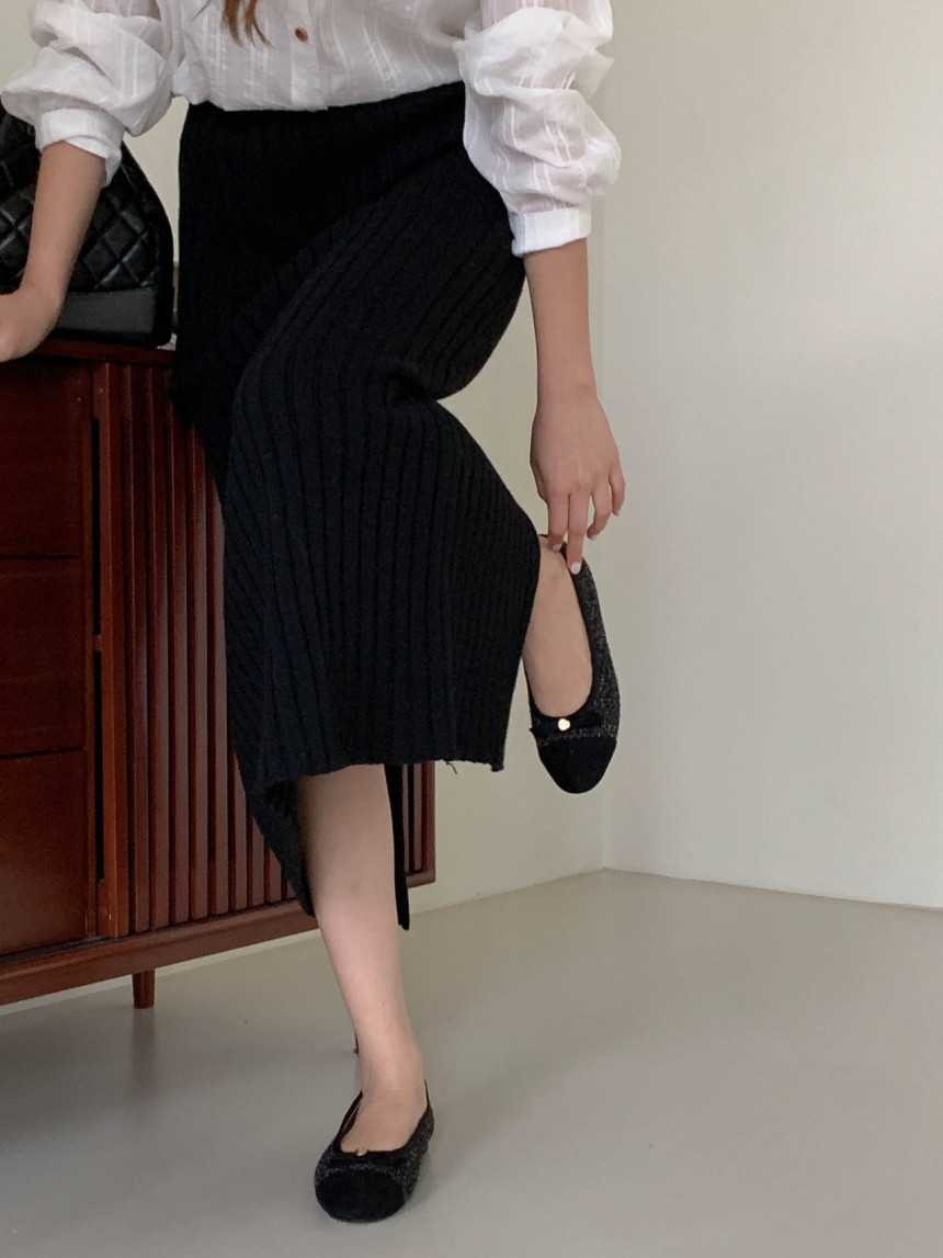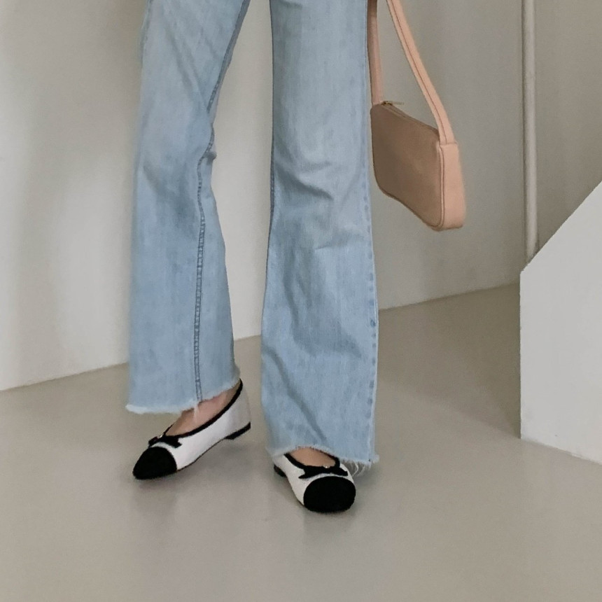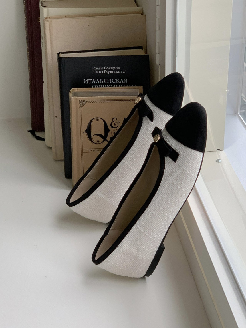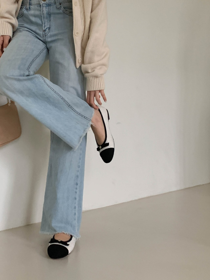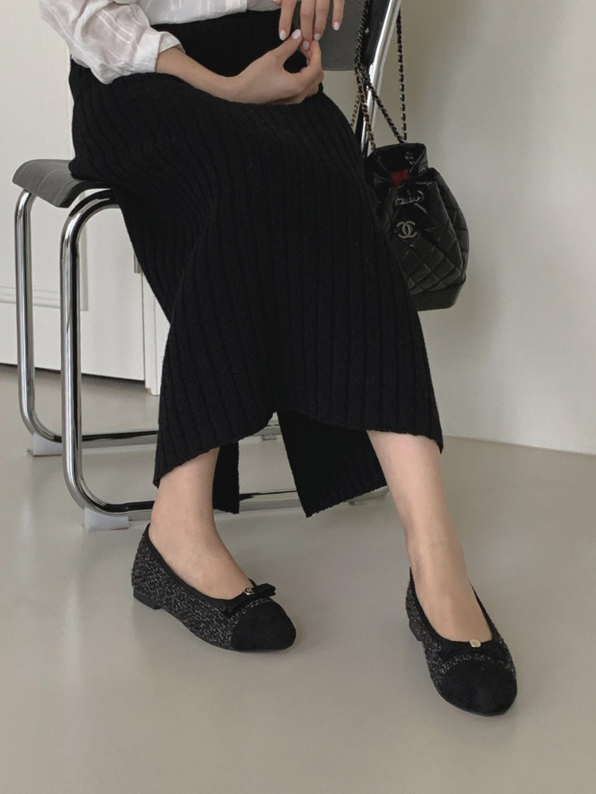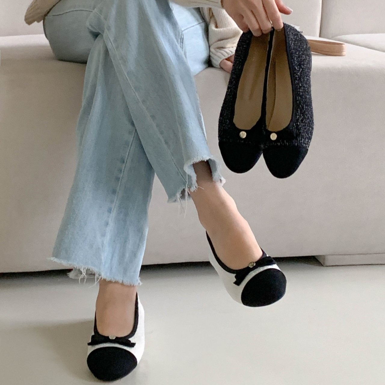 투톤 콤비 라운드토 트위드 여자 리본 플랫슈즈