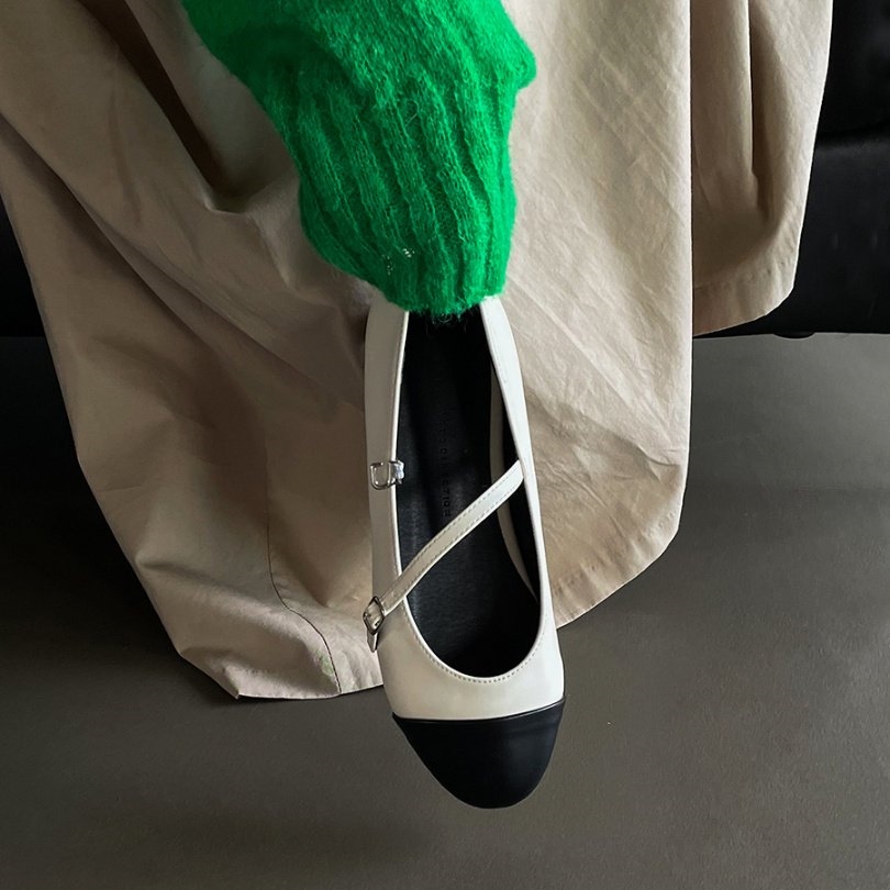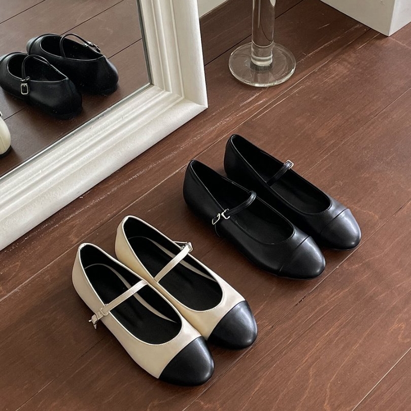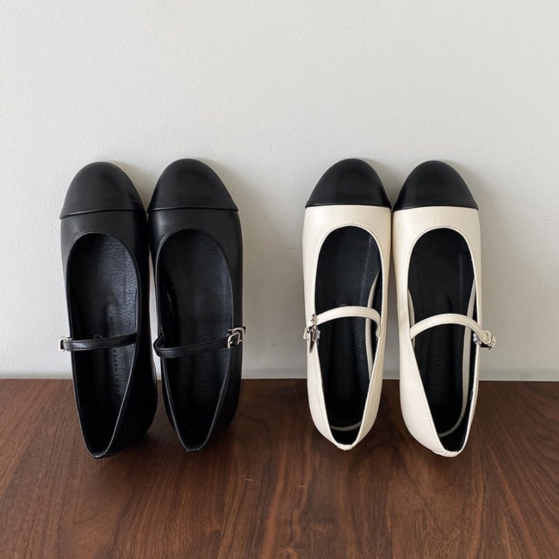 투톤 스트랩 메리제인 단화 여자 플랫슈즈