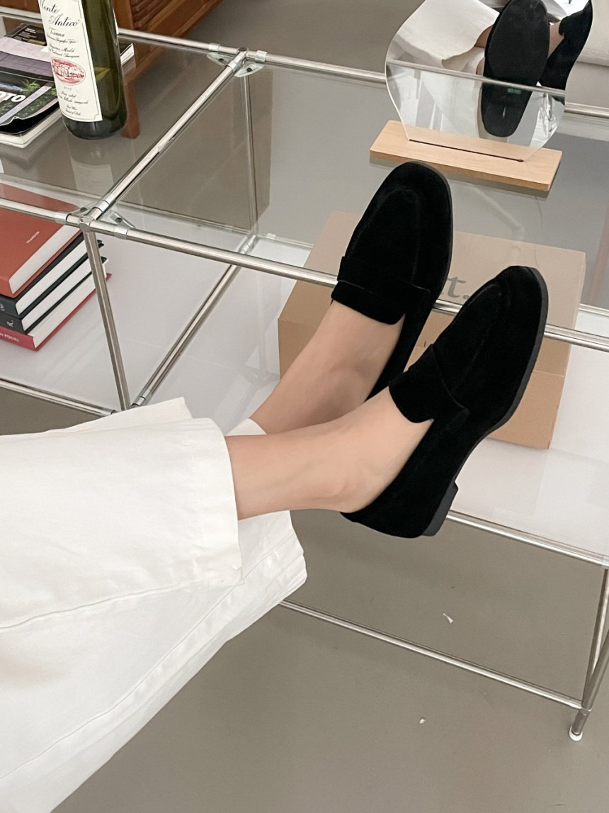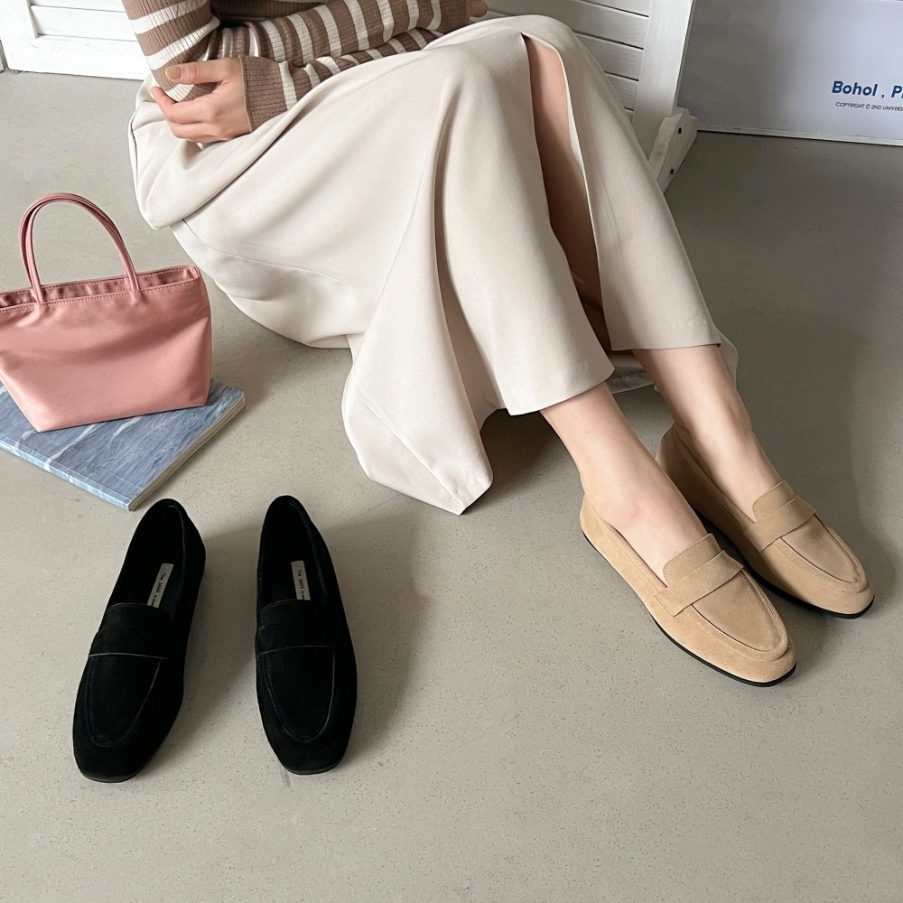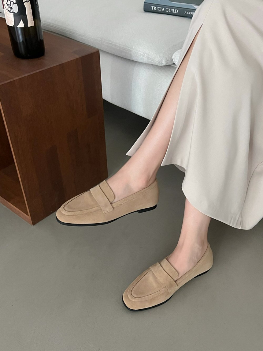 천연 소가죽 스웨이드 발편한 페니 여자 단화 로퍼