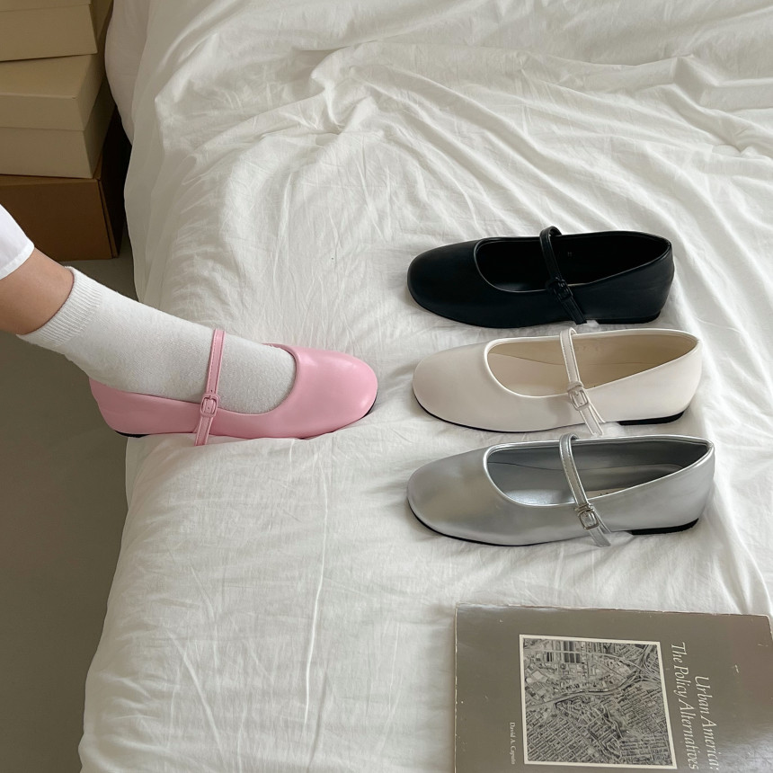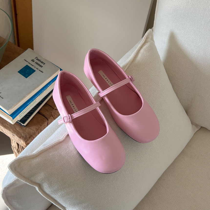 라운드 스퀘어 쉐입의 말랑 말랑한 플랫슈즈에요