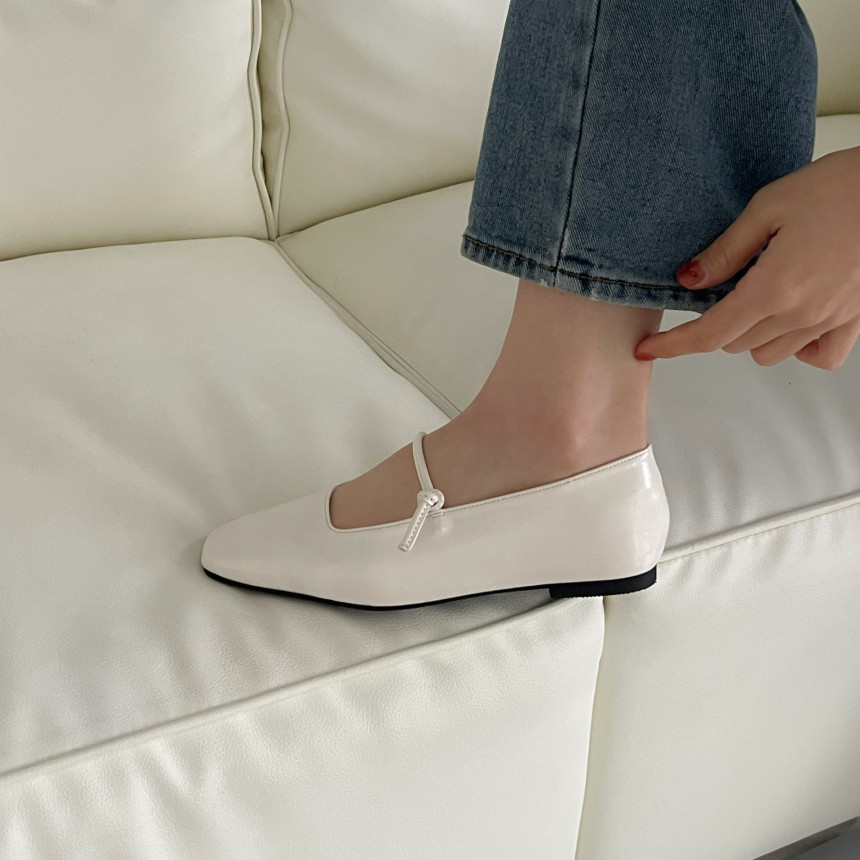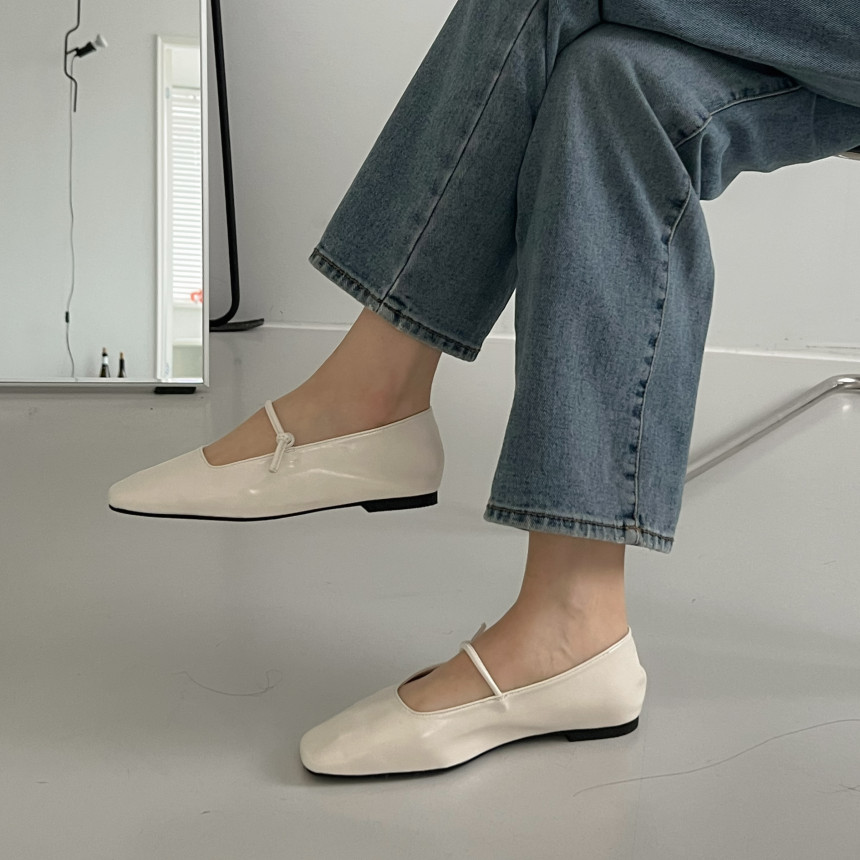 스퀘어 발등 스트랩 메리제인 여자 단화 플랫슈즈