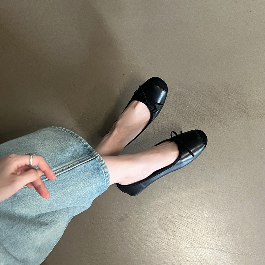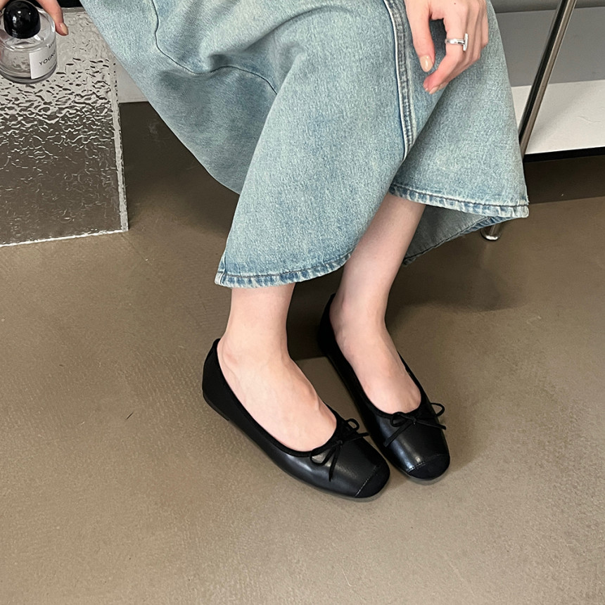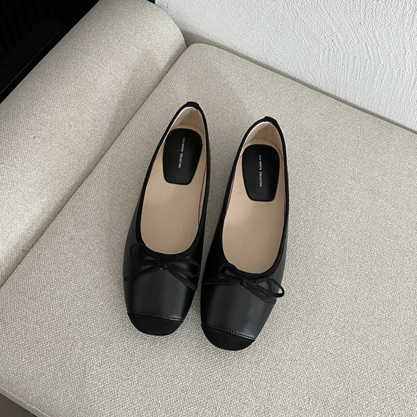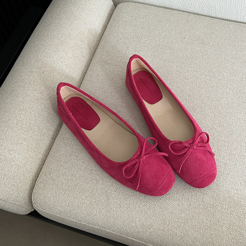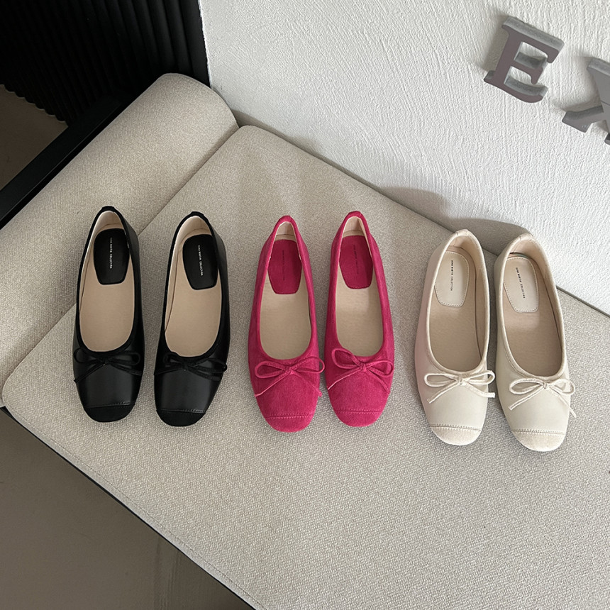 말랑 발편한 스웨이드 발레리나 리본 단화 플랫슈즈