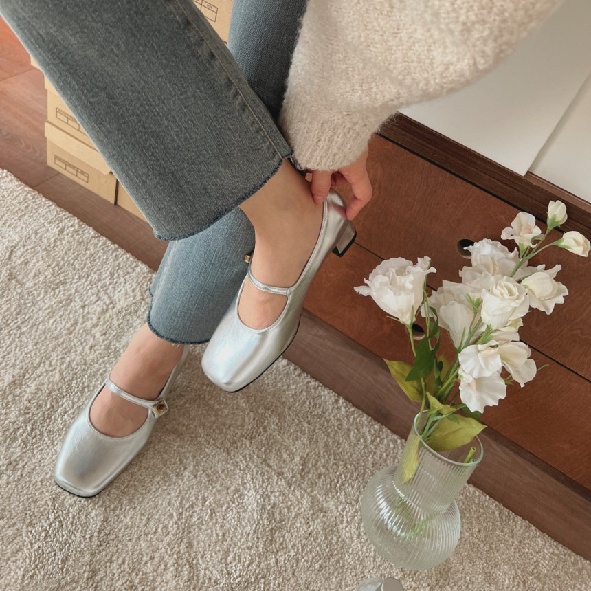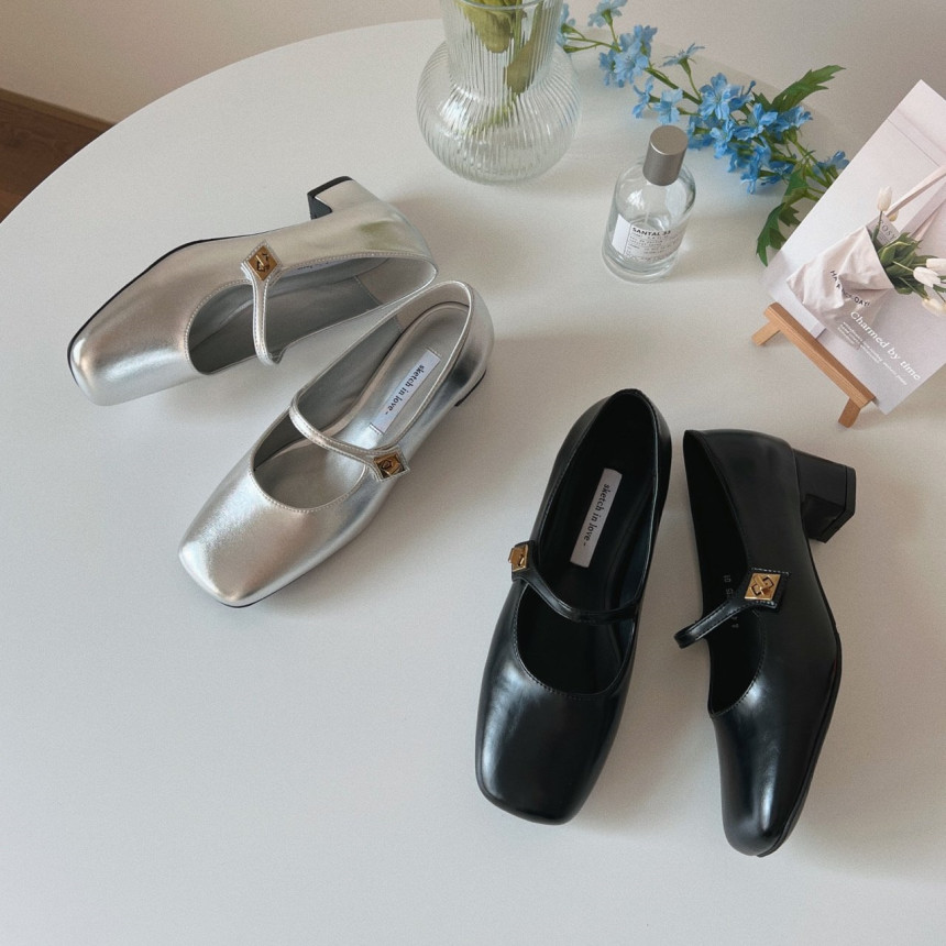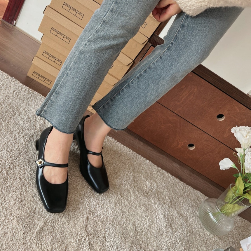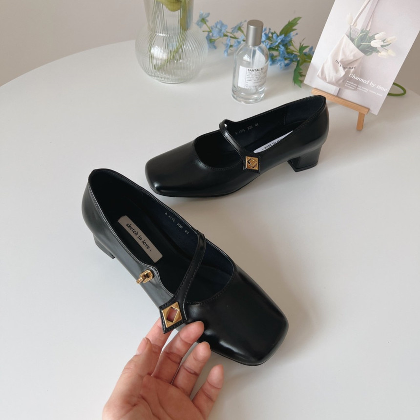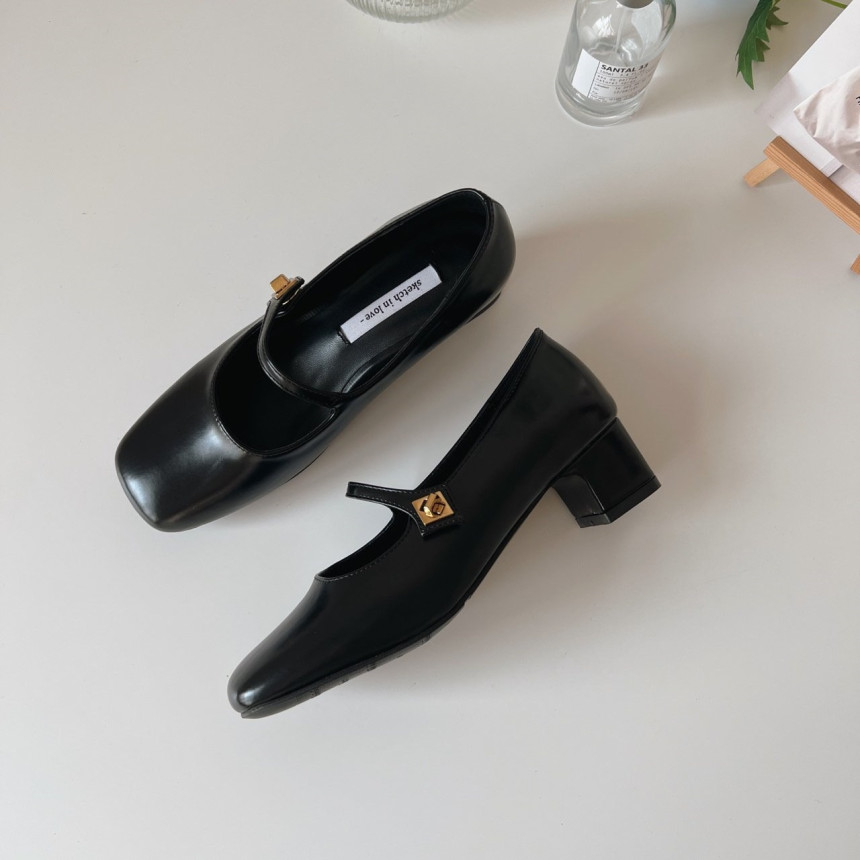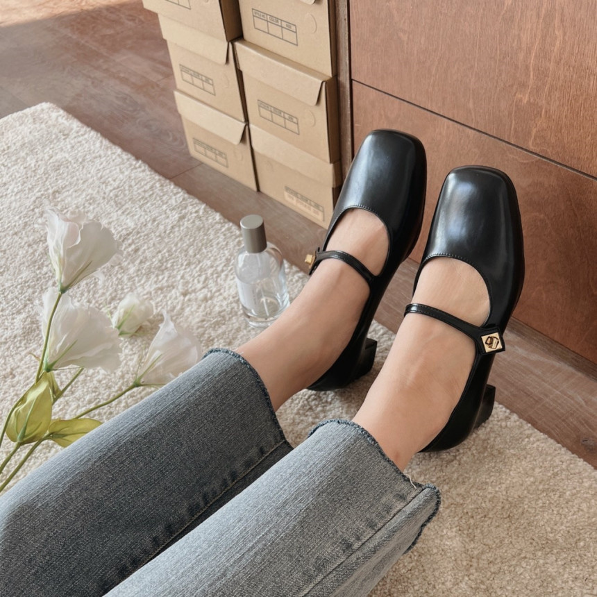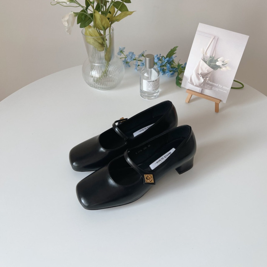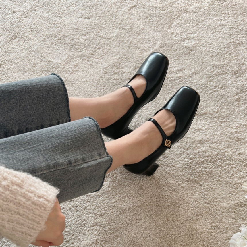 스퀘어토 버클 스트랩 메리제인 미들힐 펌프스