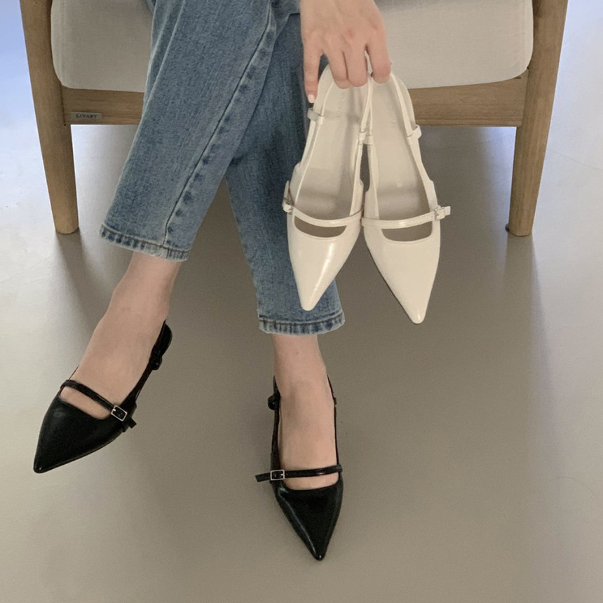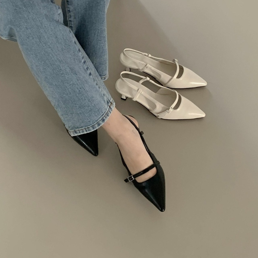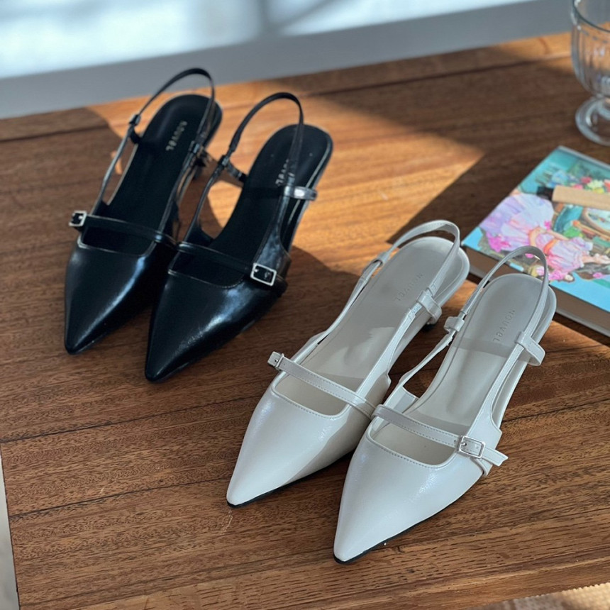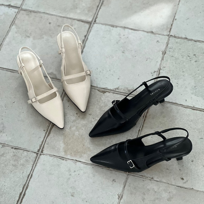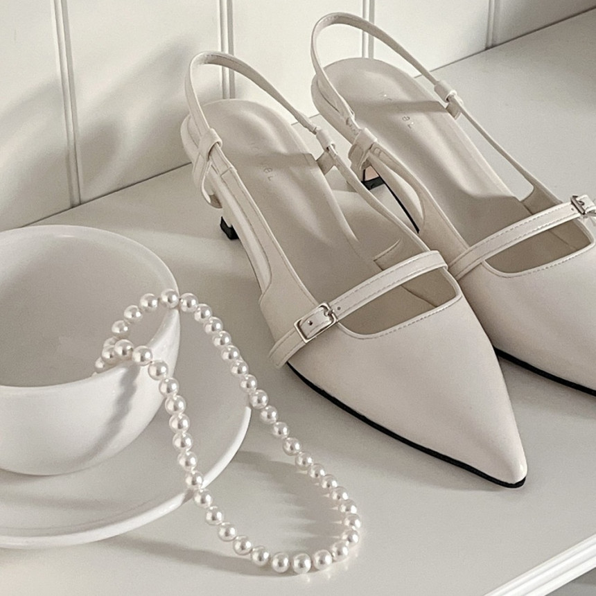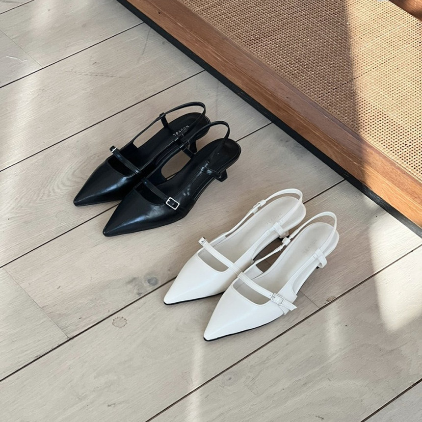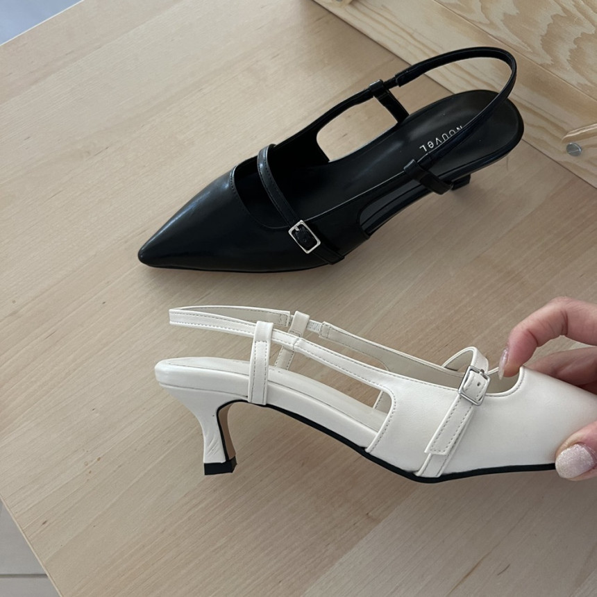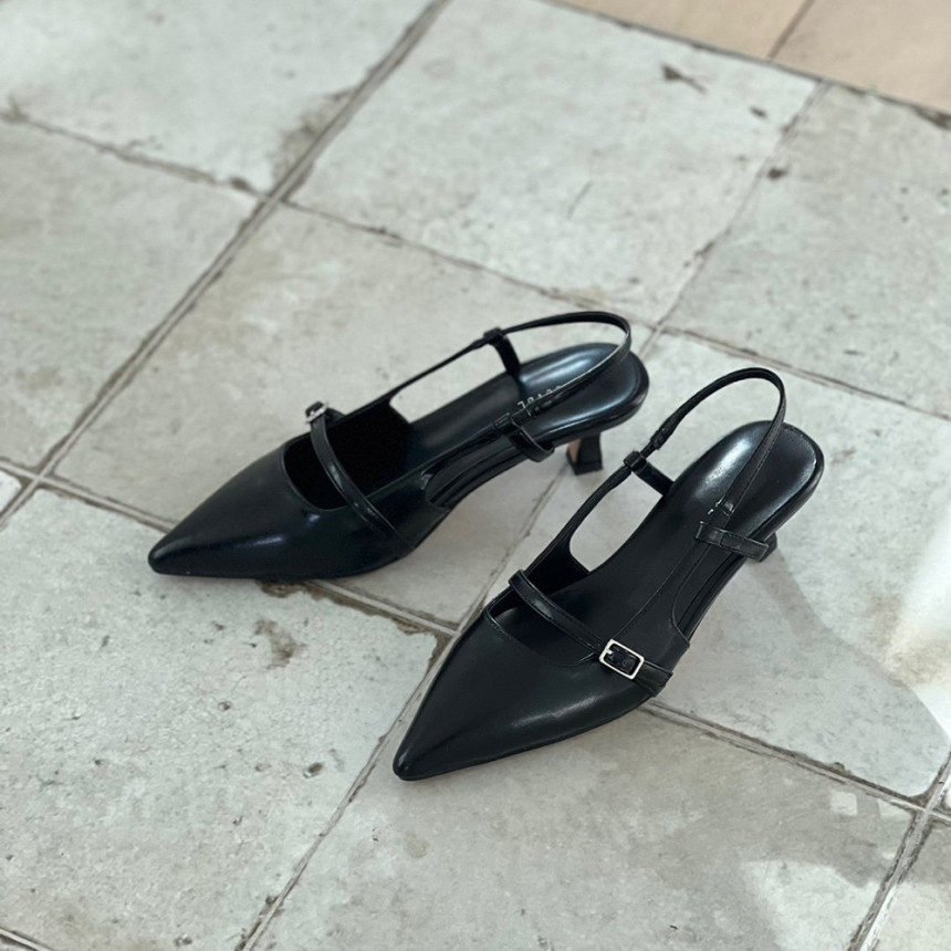 스틸레토 벨트 스트랩 미들힐 발편한 슬링백힐