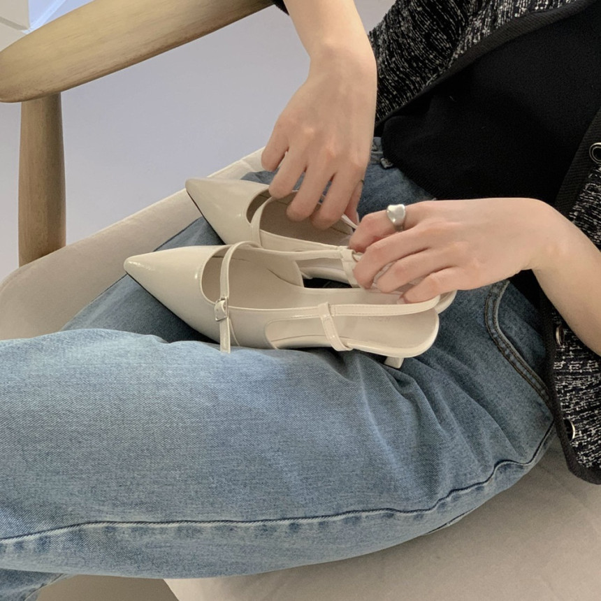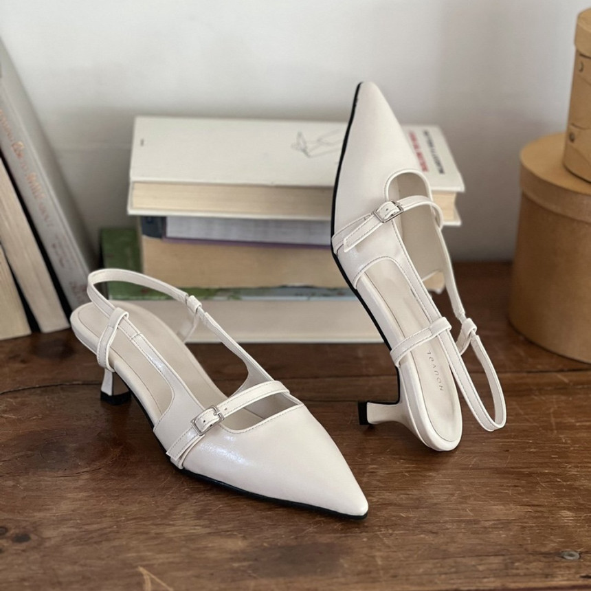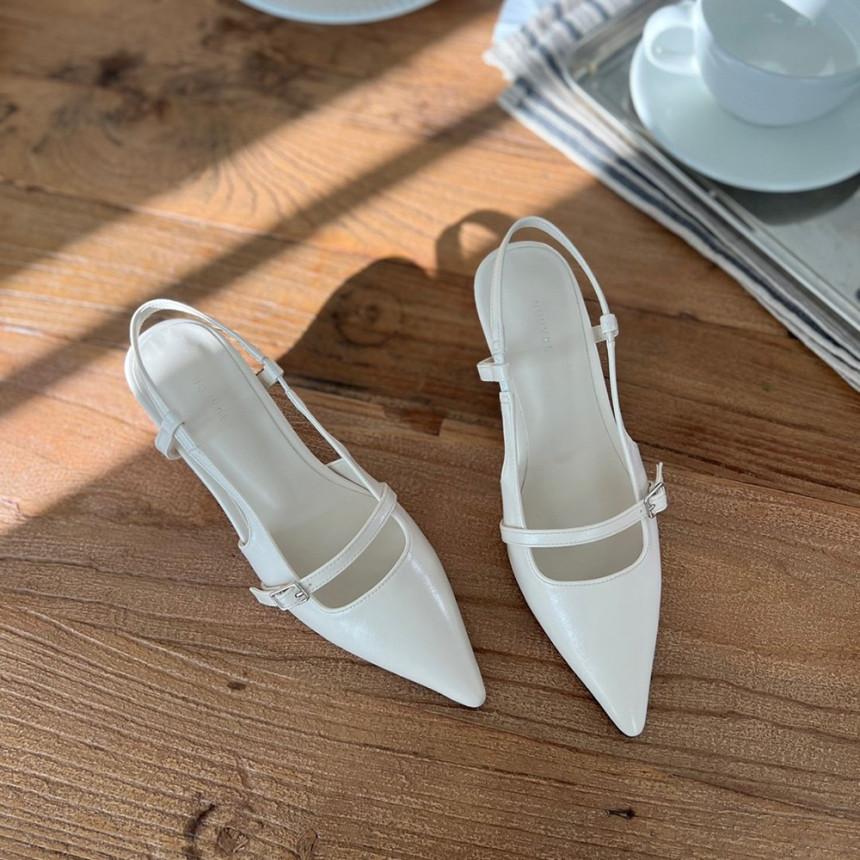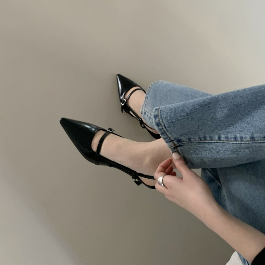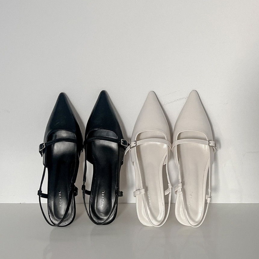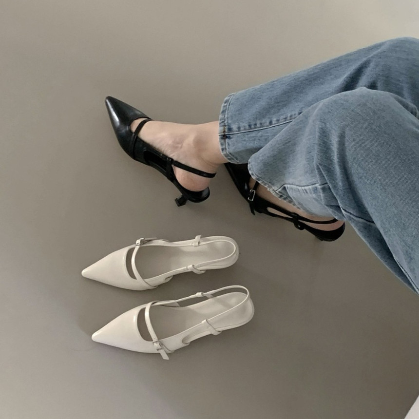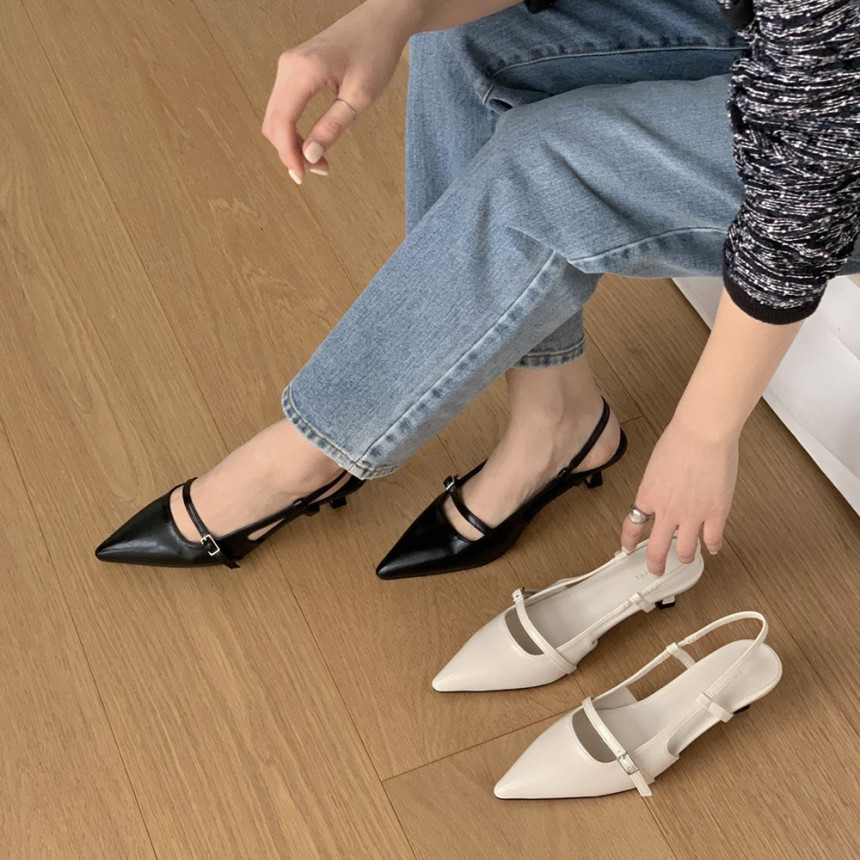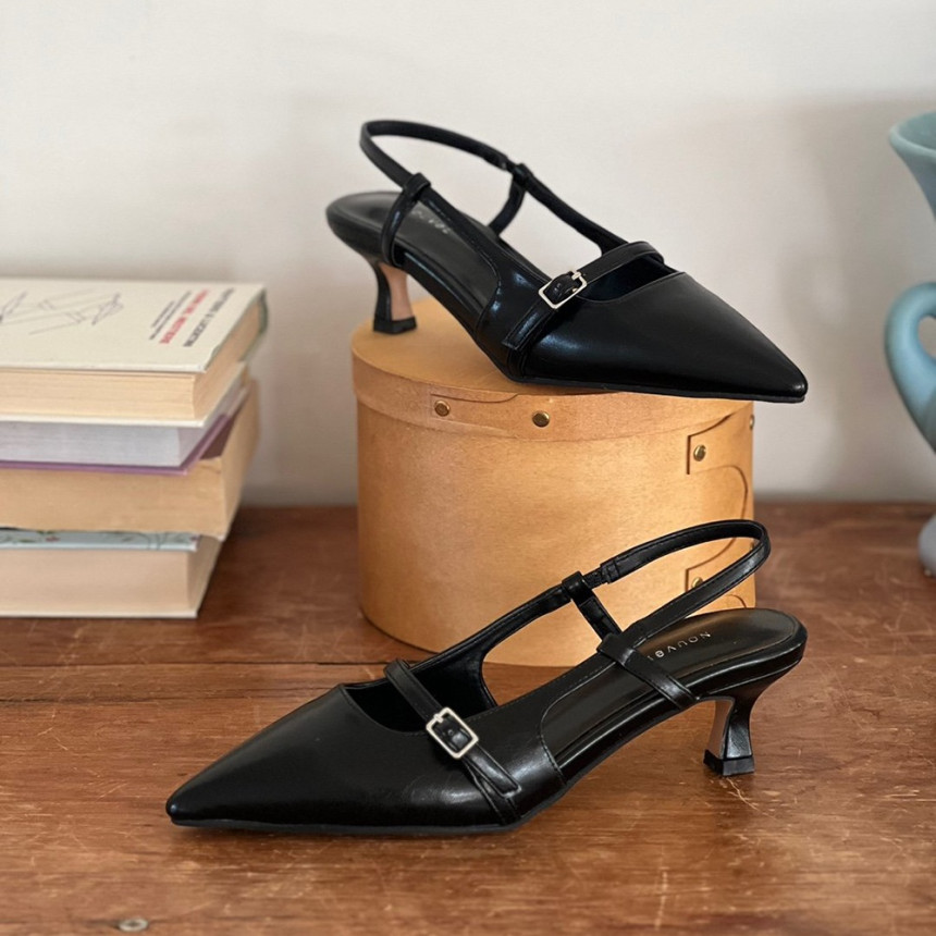 스틸레토 벨트 스트랩 미들힐 발편한 슬링백힐