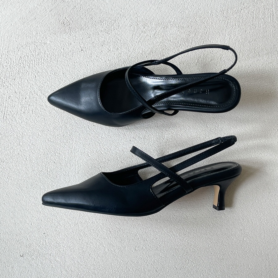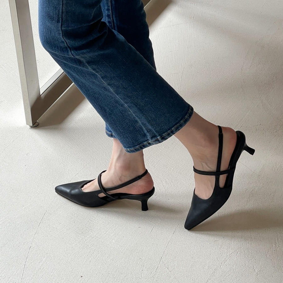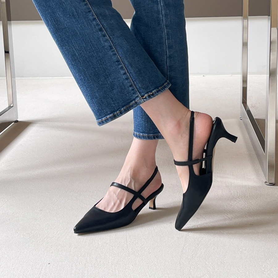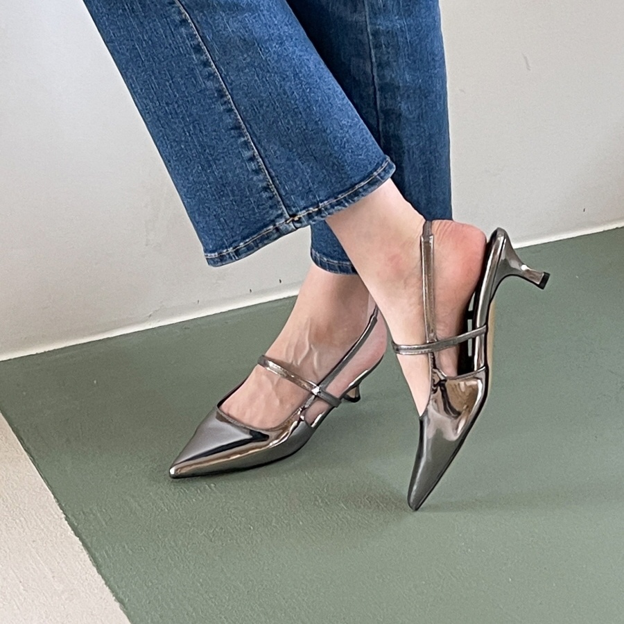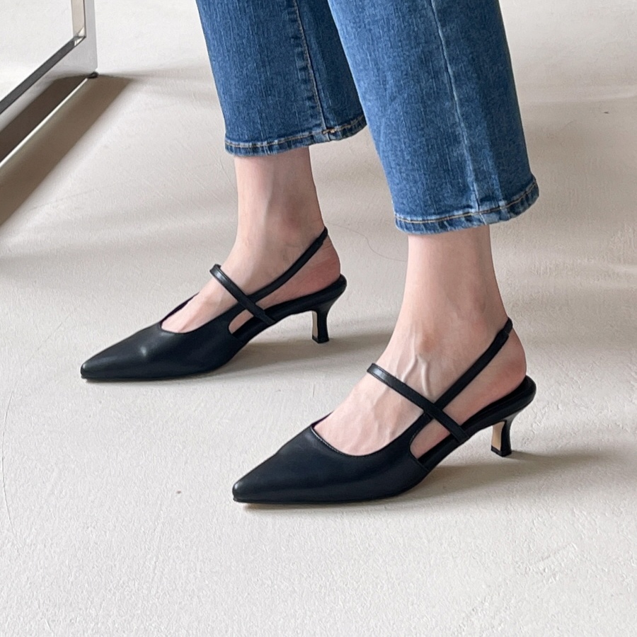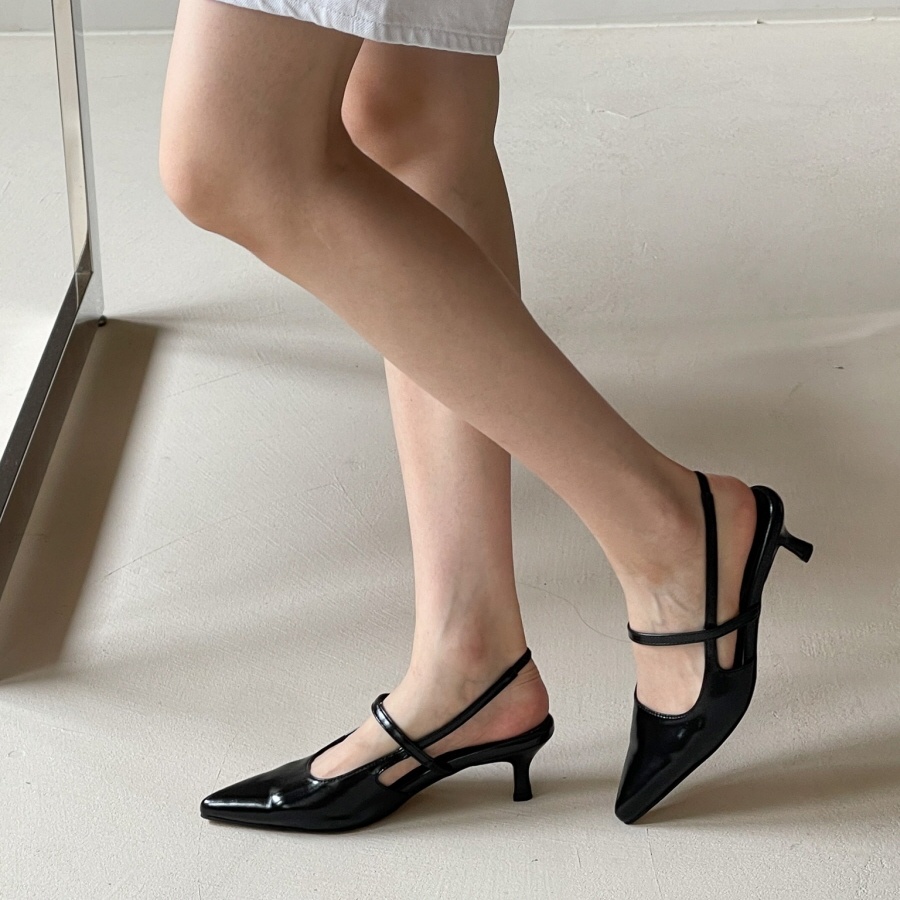 스틸레토 발등 스트랩 미들힐 여자 슬링백힐