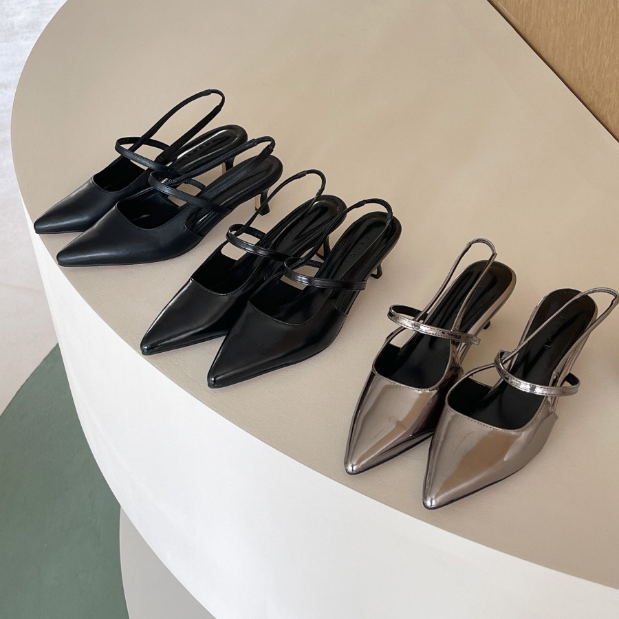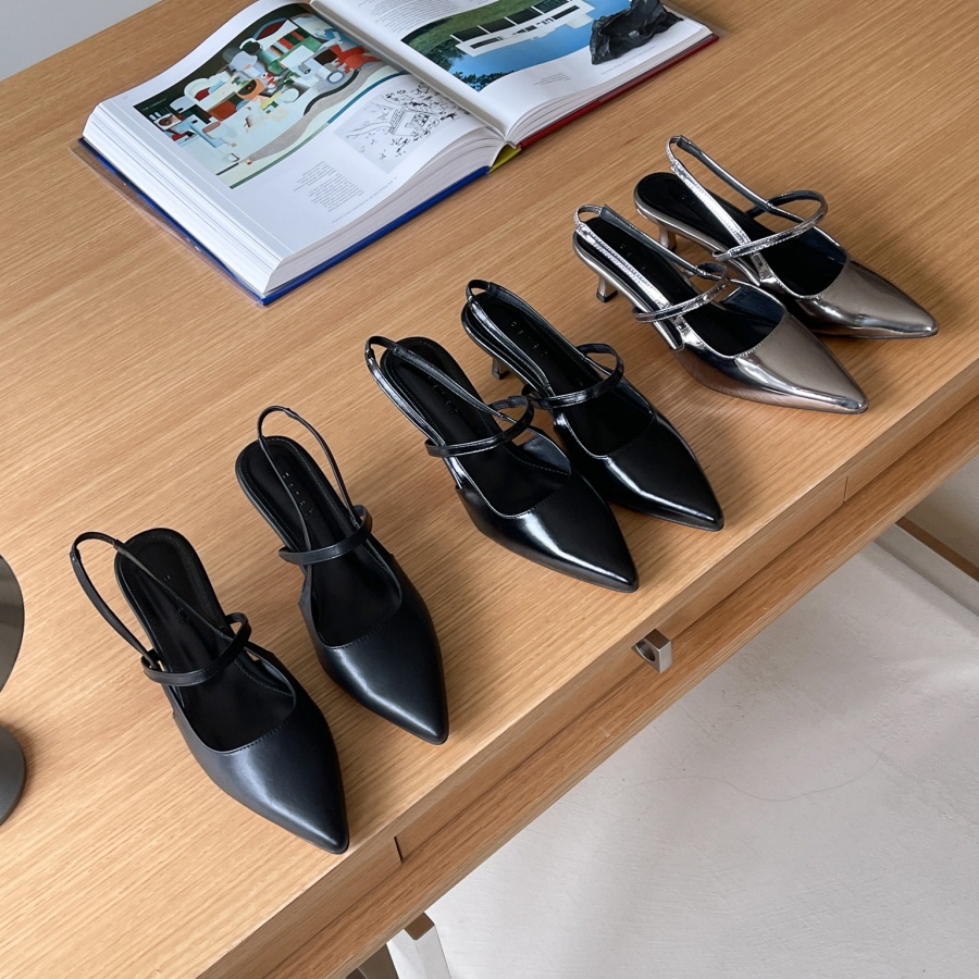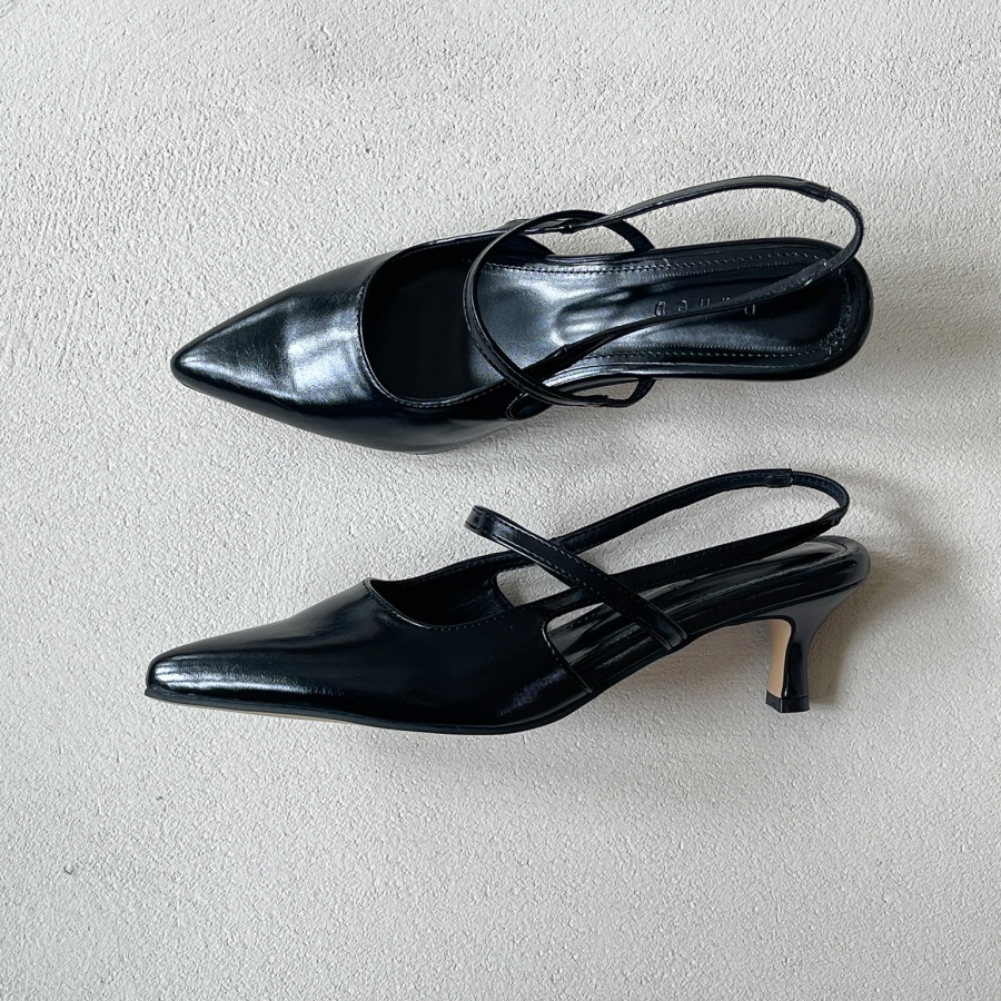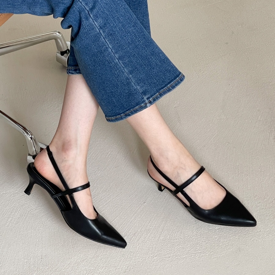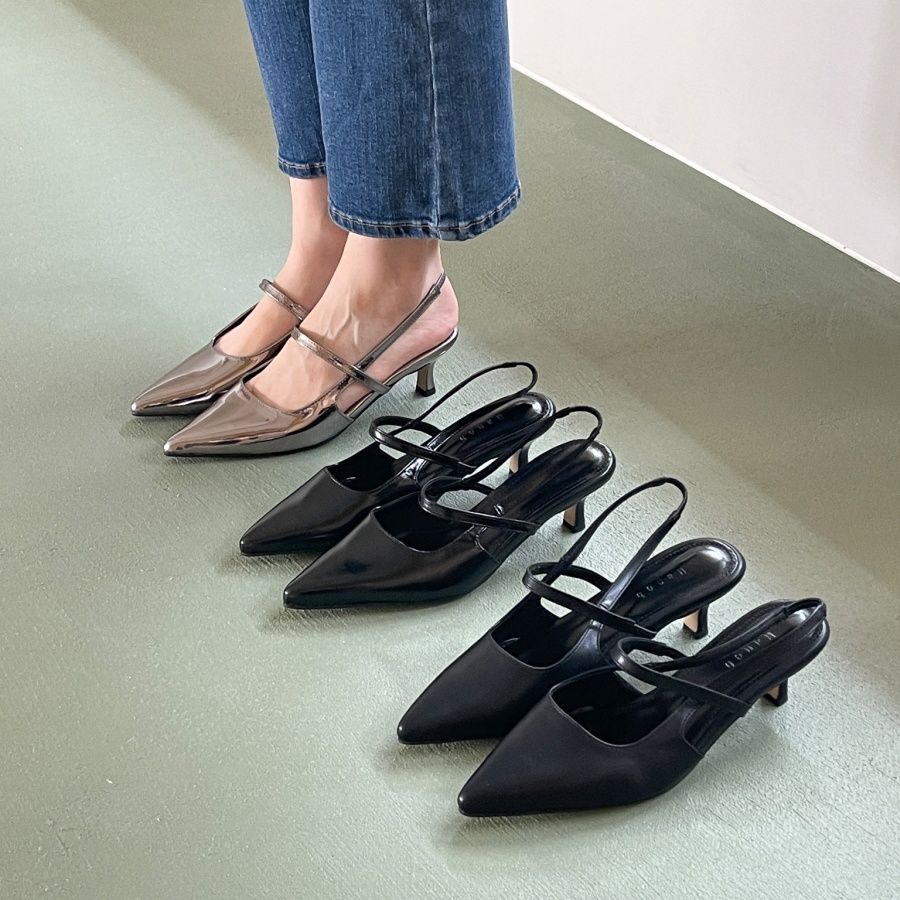 스틸레토 발등 스트랩 미들힐 여자 슬링백힐