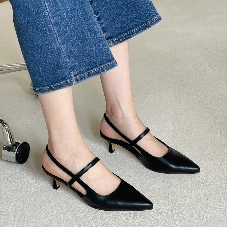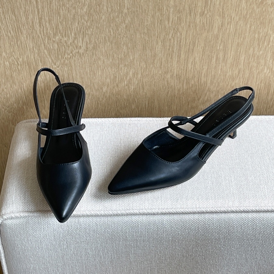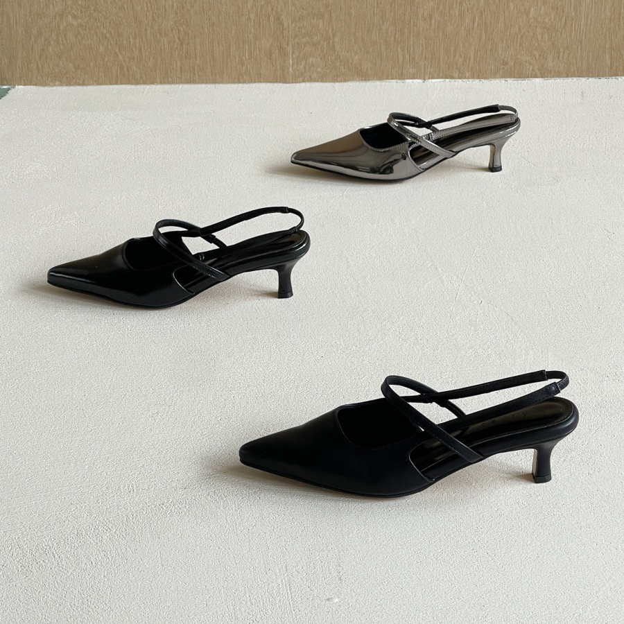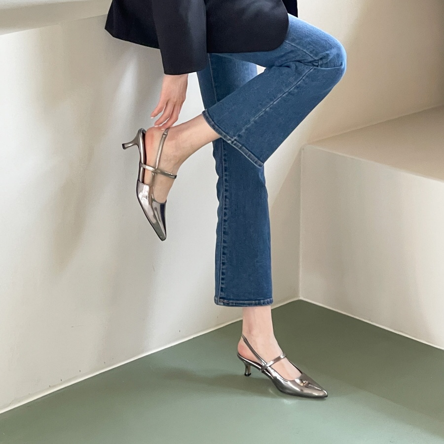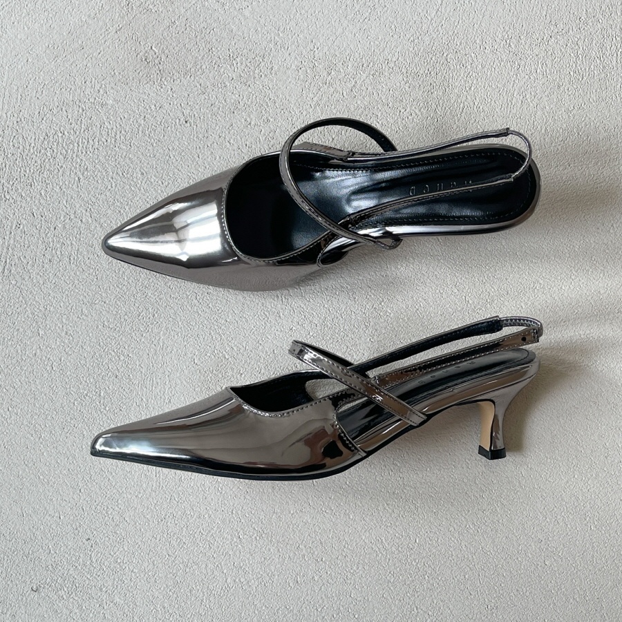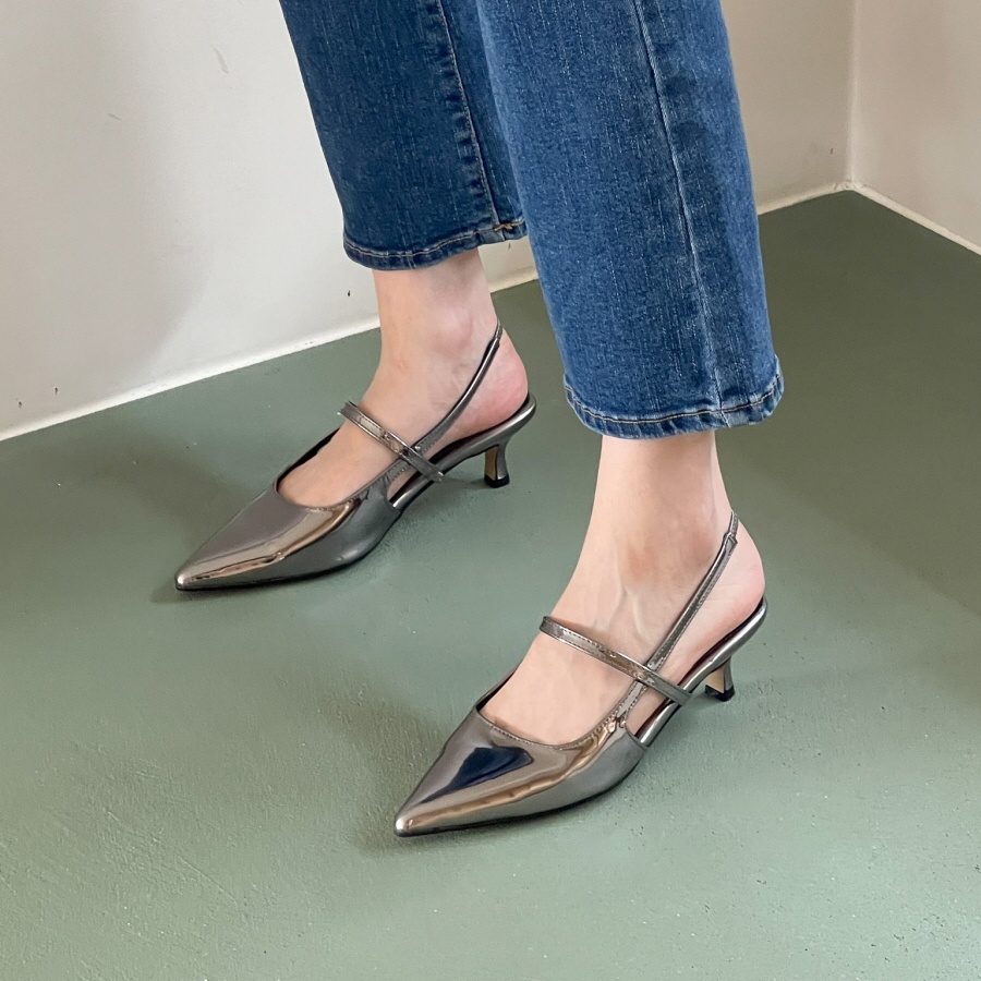 스틸레토 발등 스트랩 미들힐 여자 슬링백힐