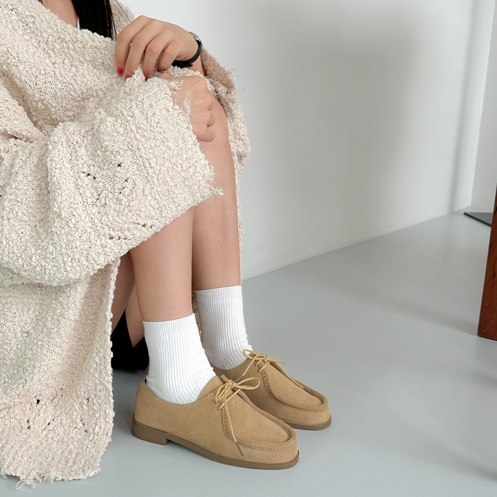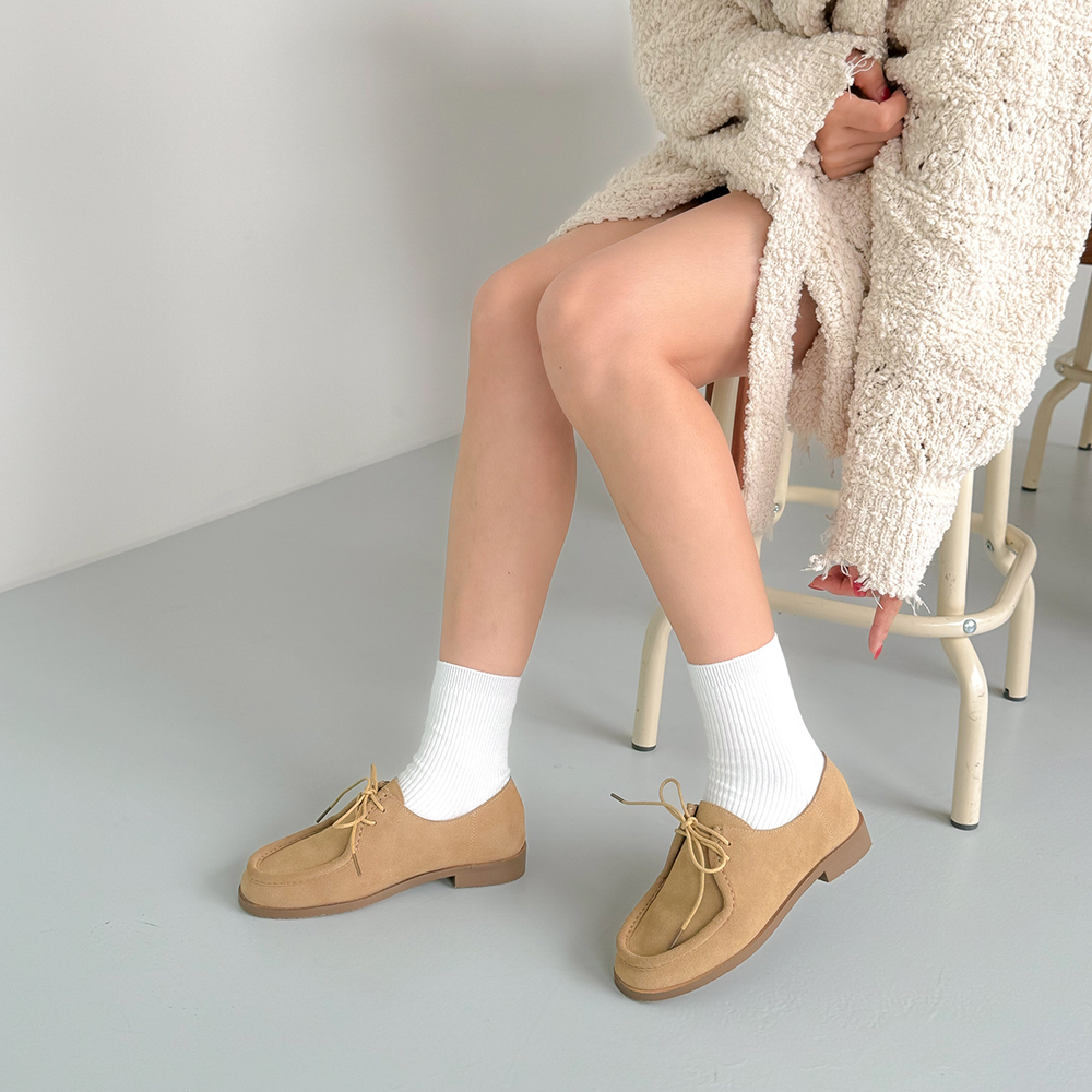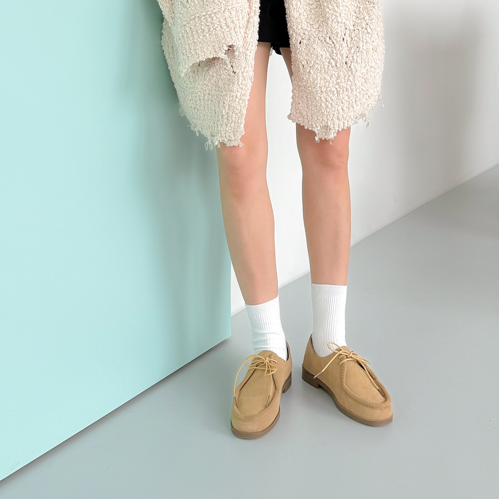 천연 소가죽 스웨이드 레이스업 데저트 여자 로퍼