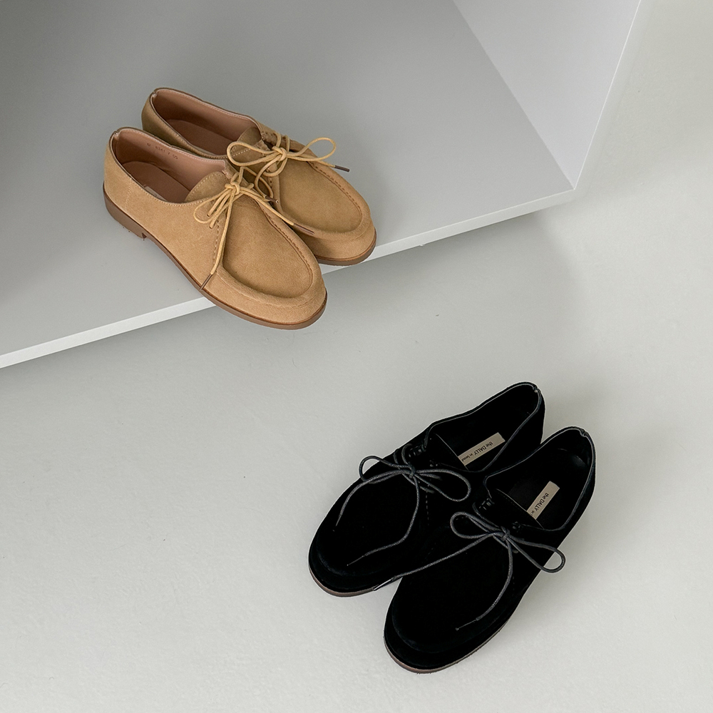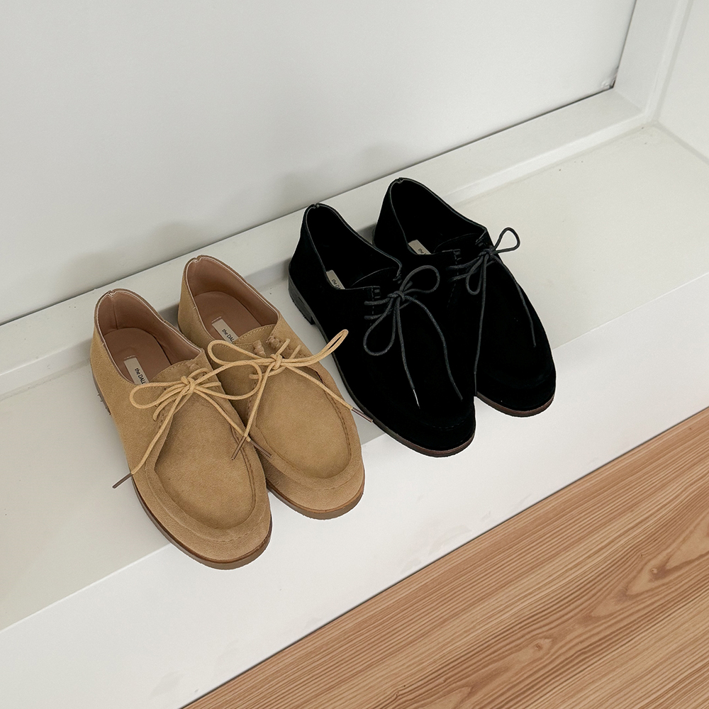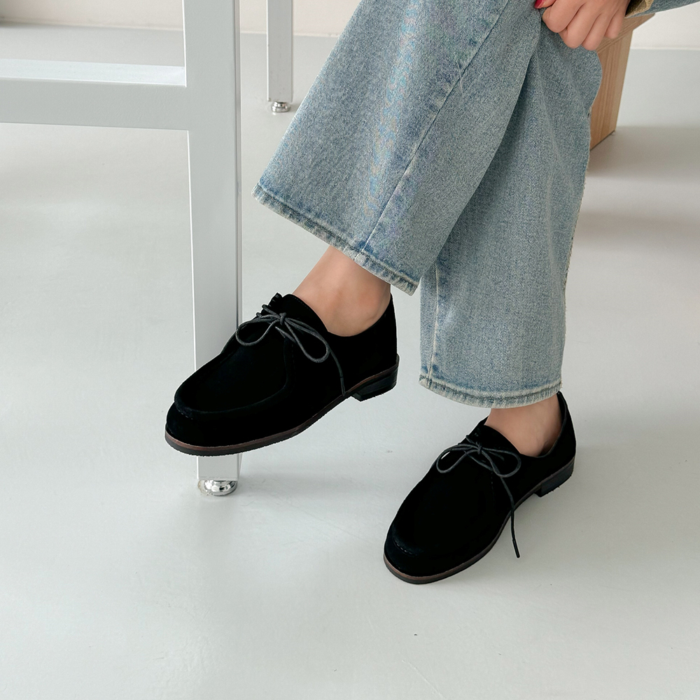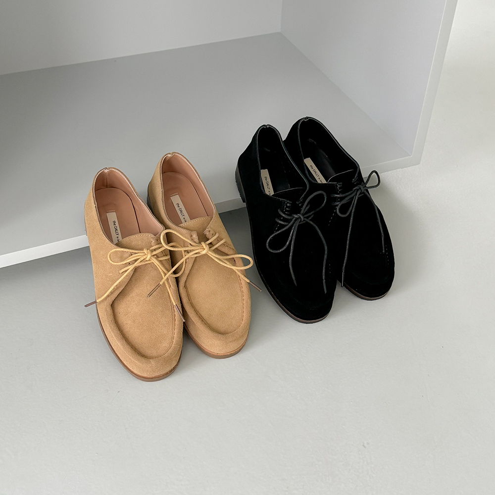 천연 소가죽 스웨이드 레이스업 데저트 여자 로퍼