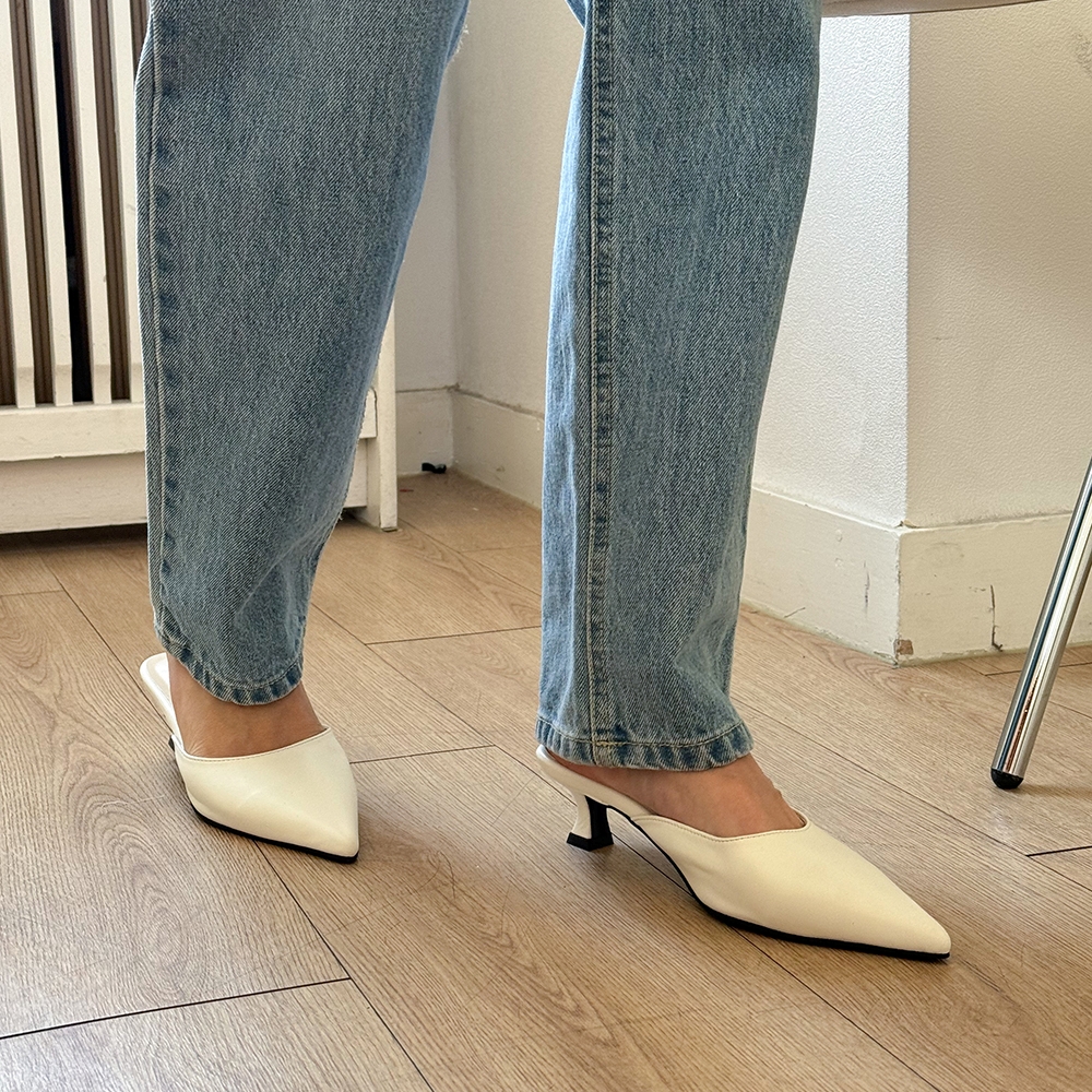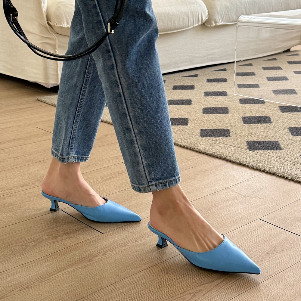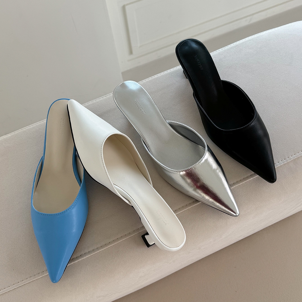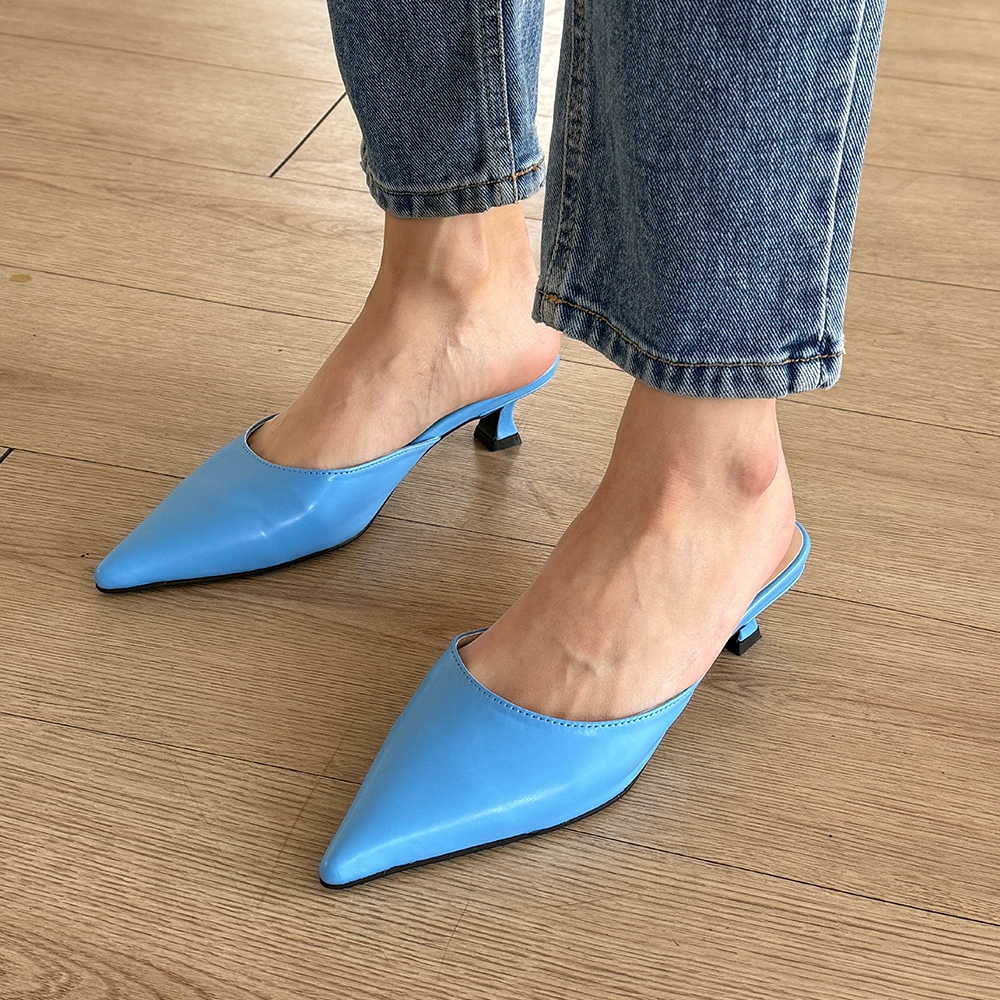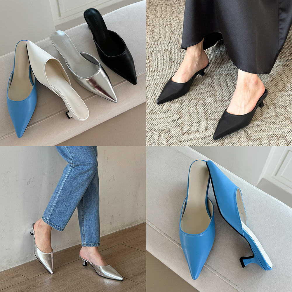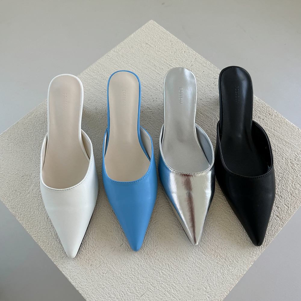 심플 베이직 스틸레토 미들힐 여자 블로퍼 슬리퍼힐