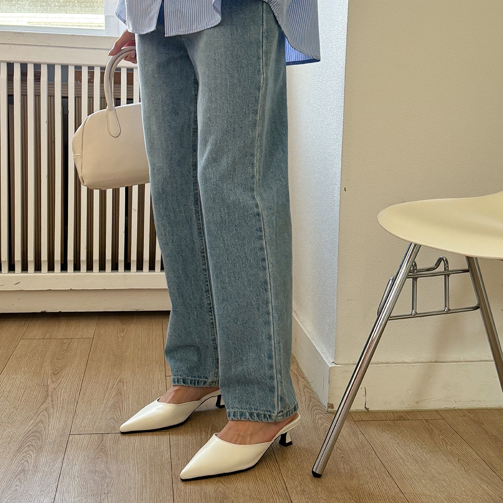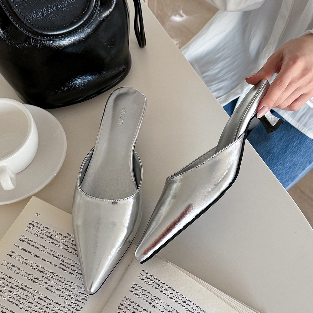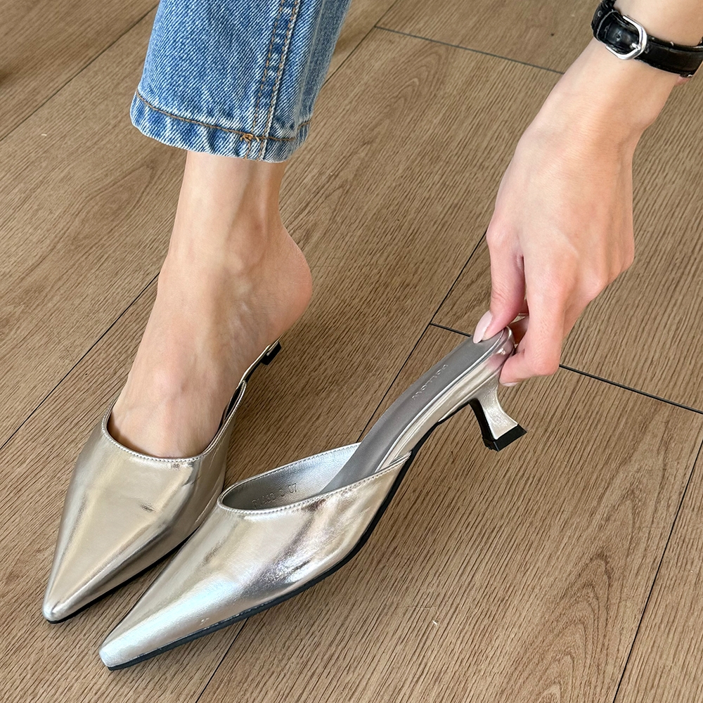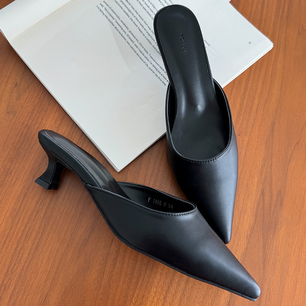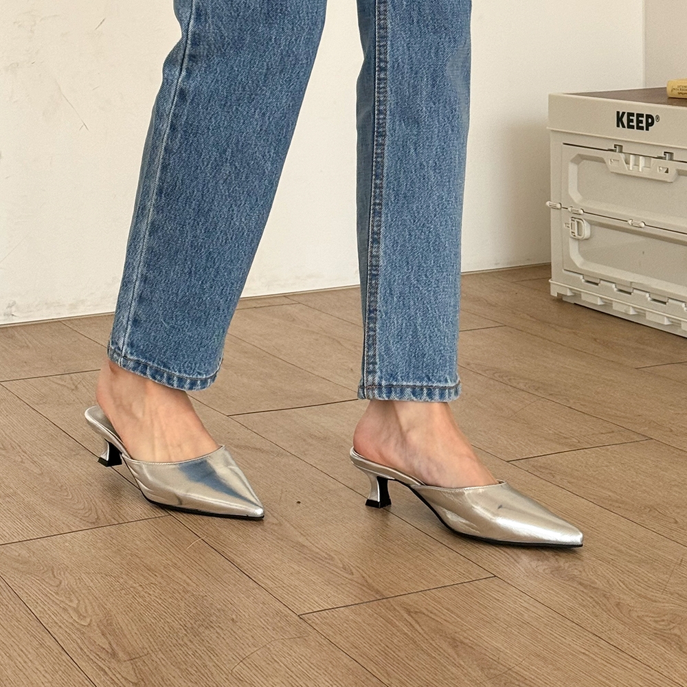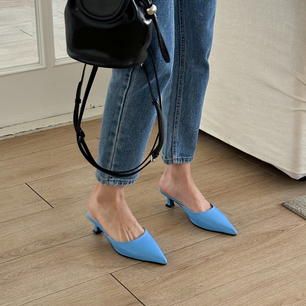 심플 베이직 스틸레토 미들힐 여자 블로퍼 슬리퍼힐