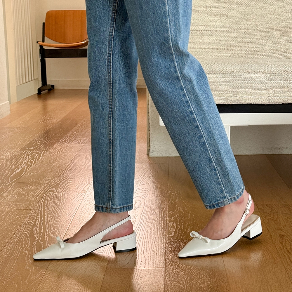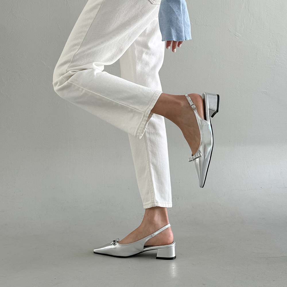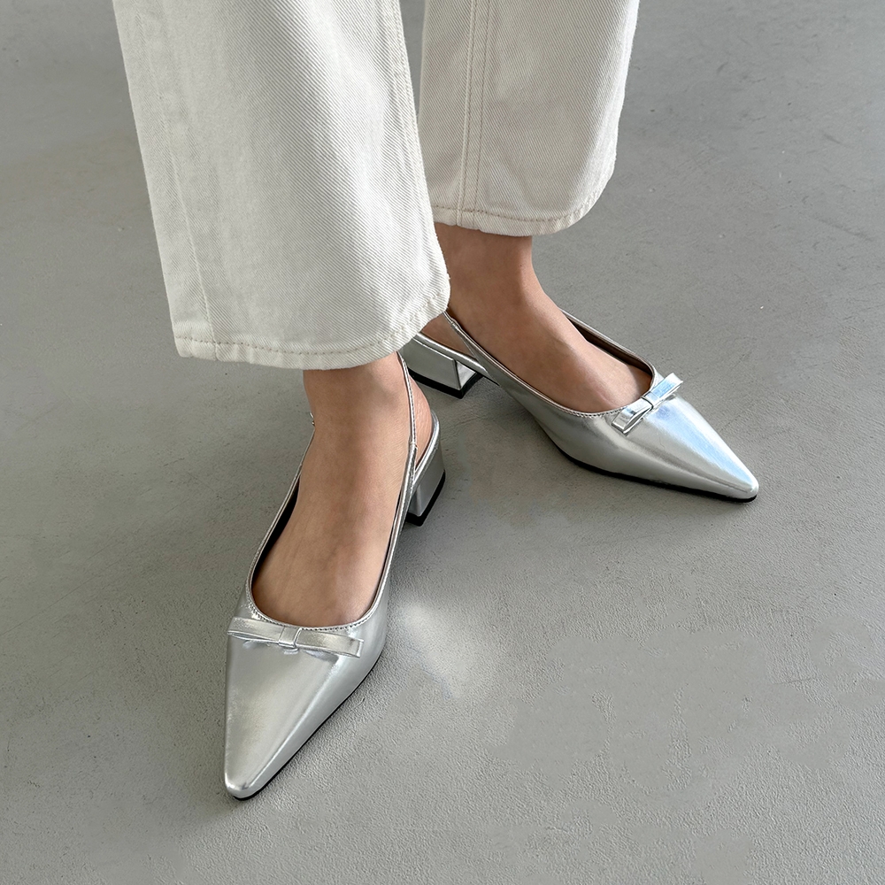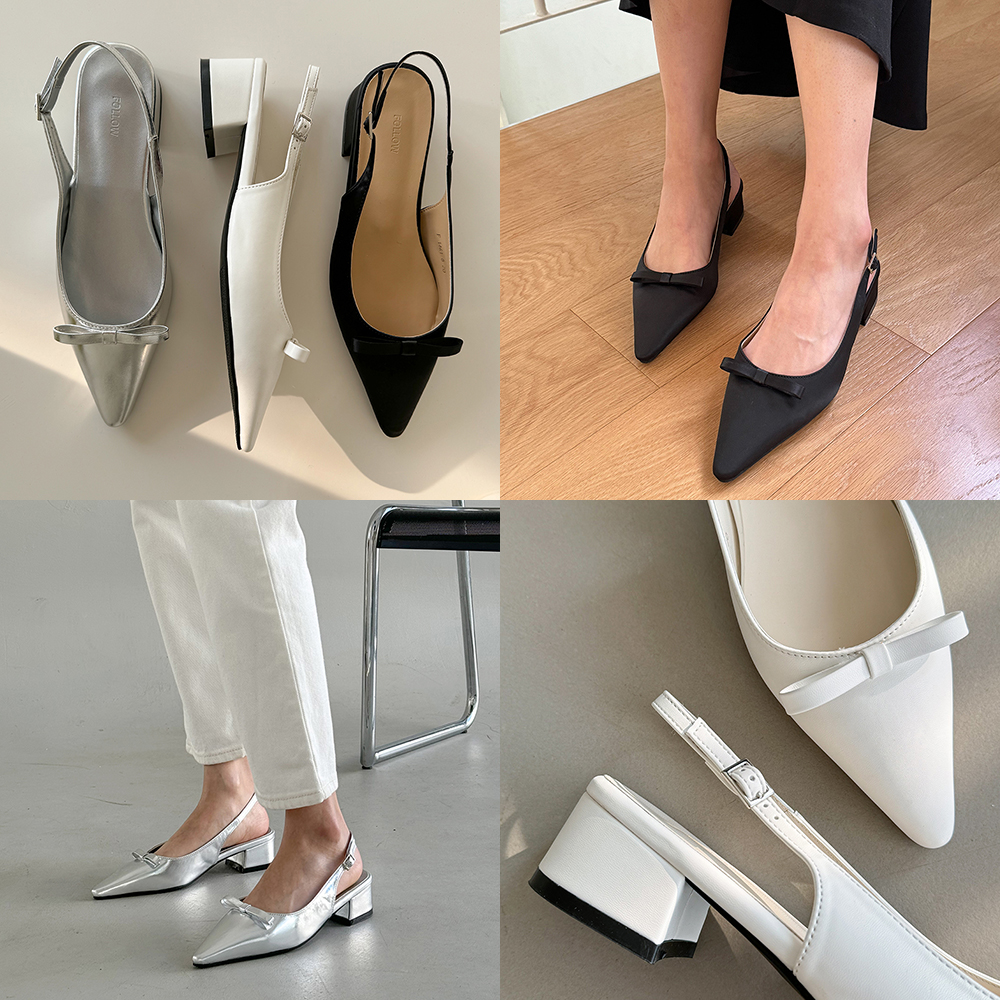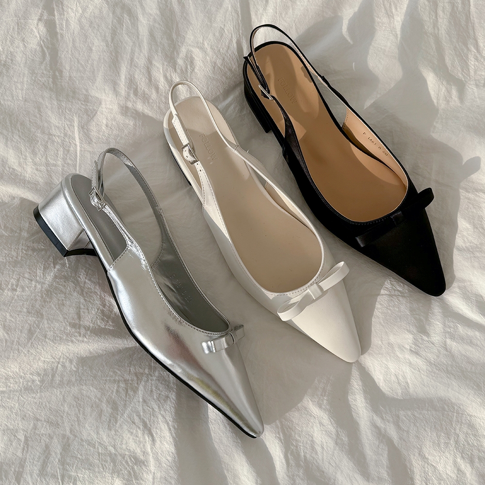 심플하고 귀여운 리본 장식의 슬링백구두입니다